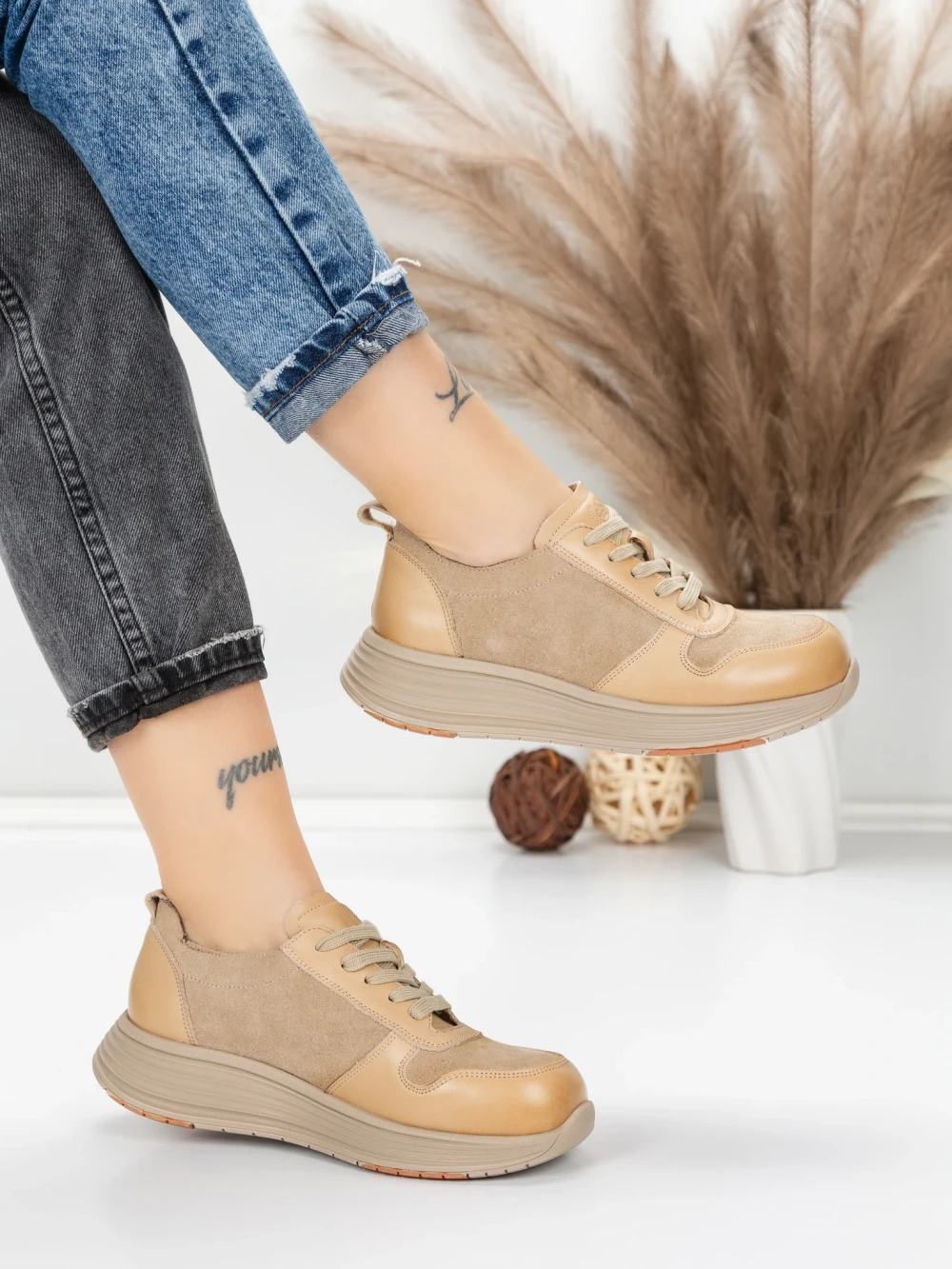 Pantofi Sport Dama din piele naturala HY1333 Cafea-Crem | Franco Gerardo