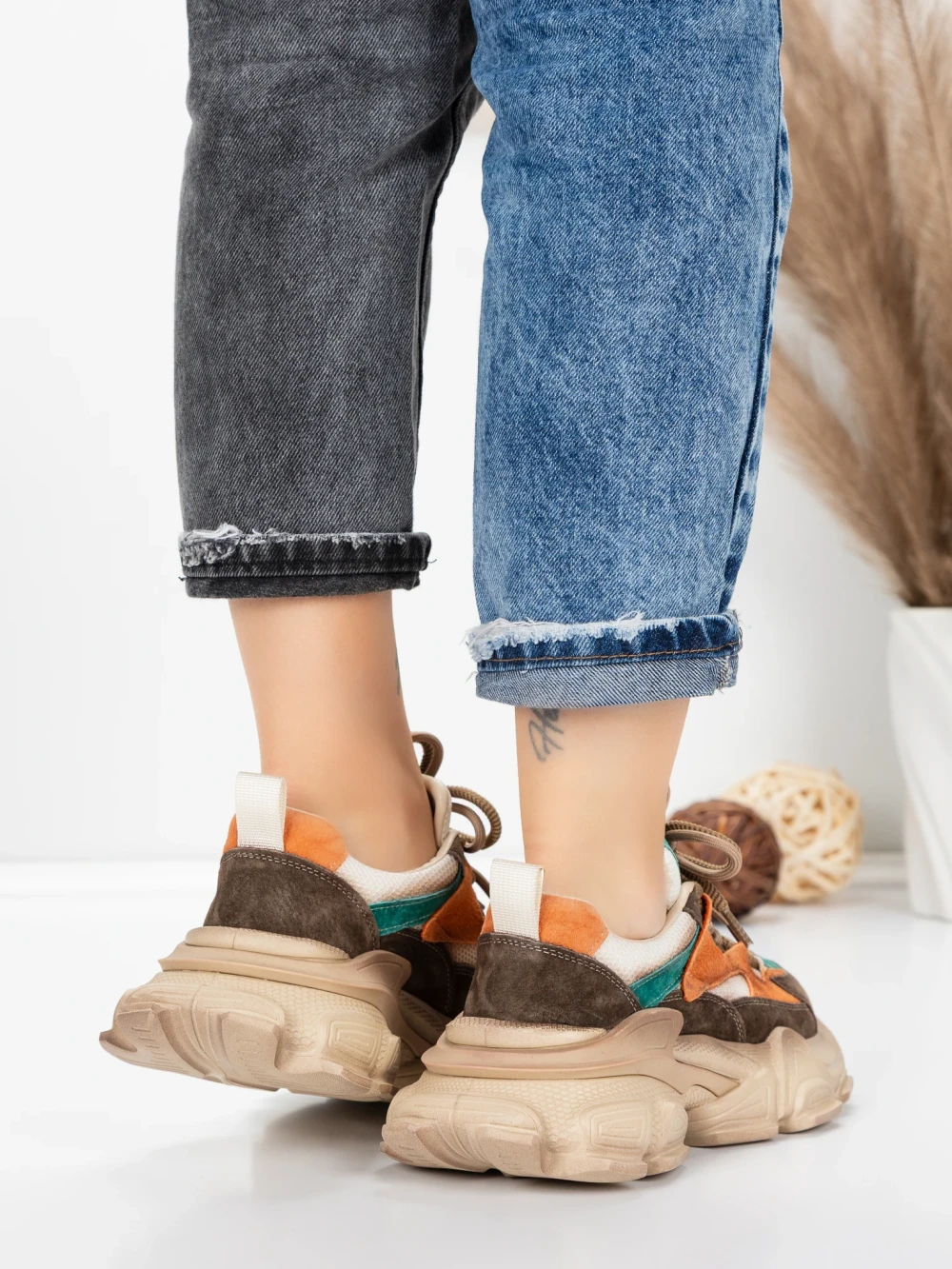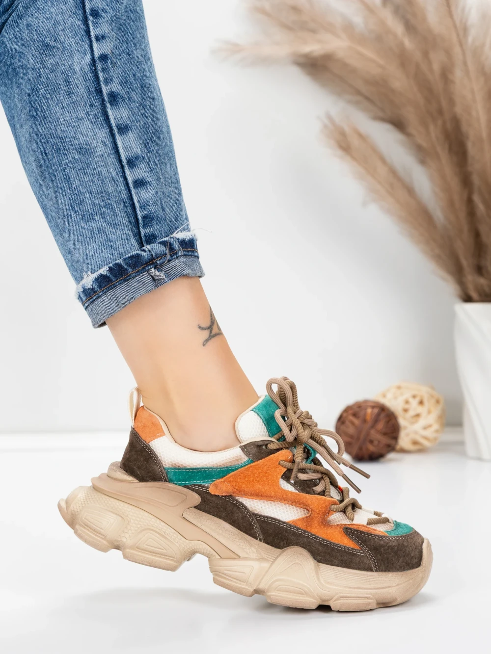Pantofi Sport Dama din piele naturala HY5798 Cafea-Verde deschis | Franco Gerardo