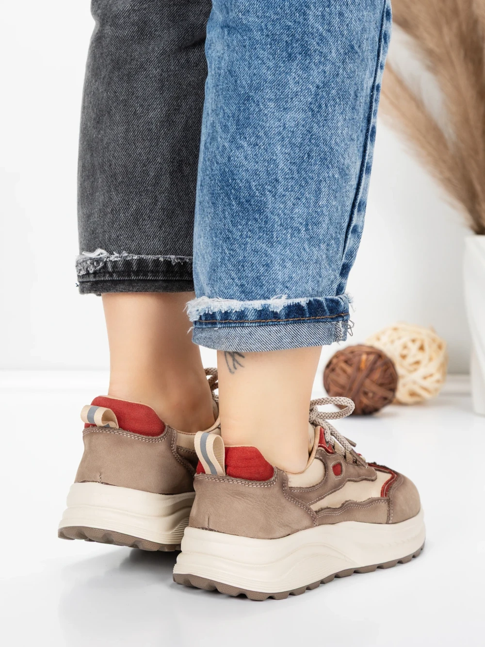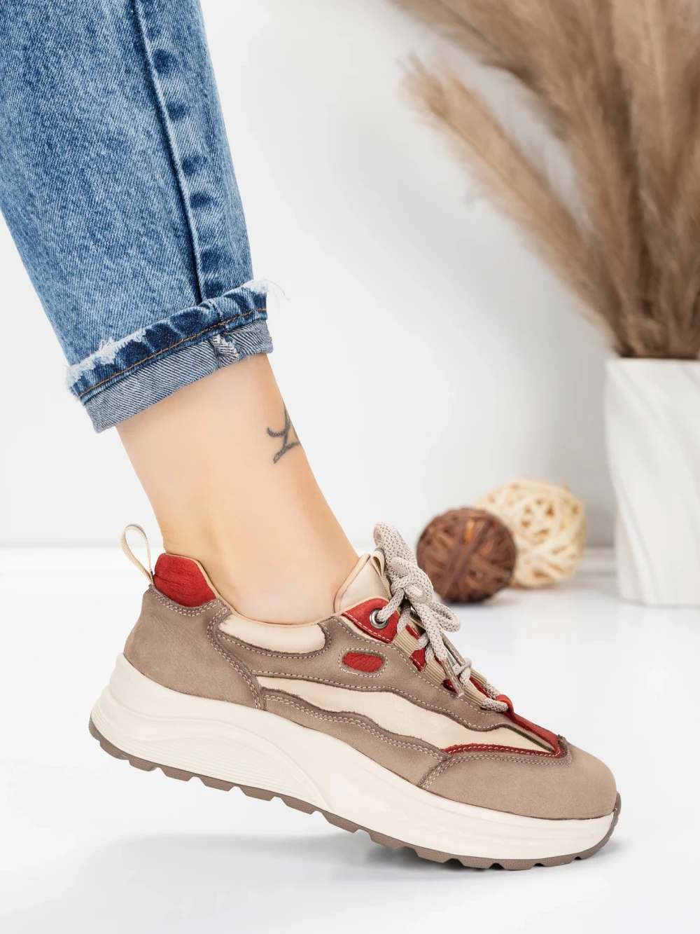 Pantofi Sport Dama din piele naturala 2576 Crem-Rosu | Advancer