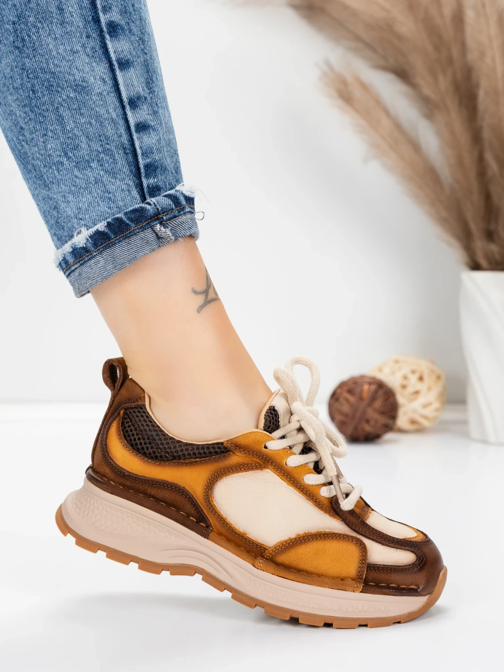 Pantofi Sport Dama din piele naturala 10018 Galben | Franco Gerardo