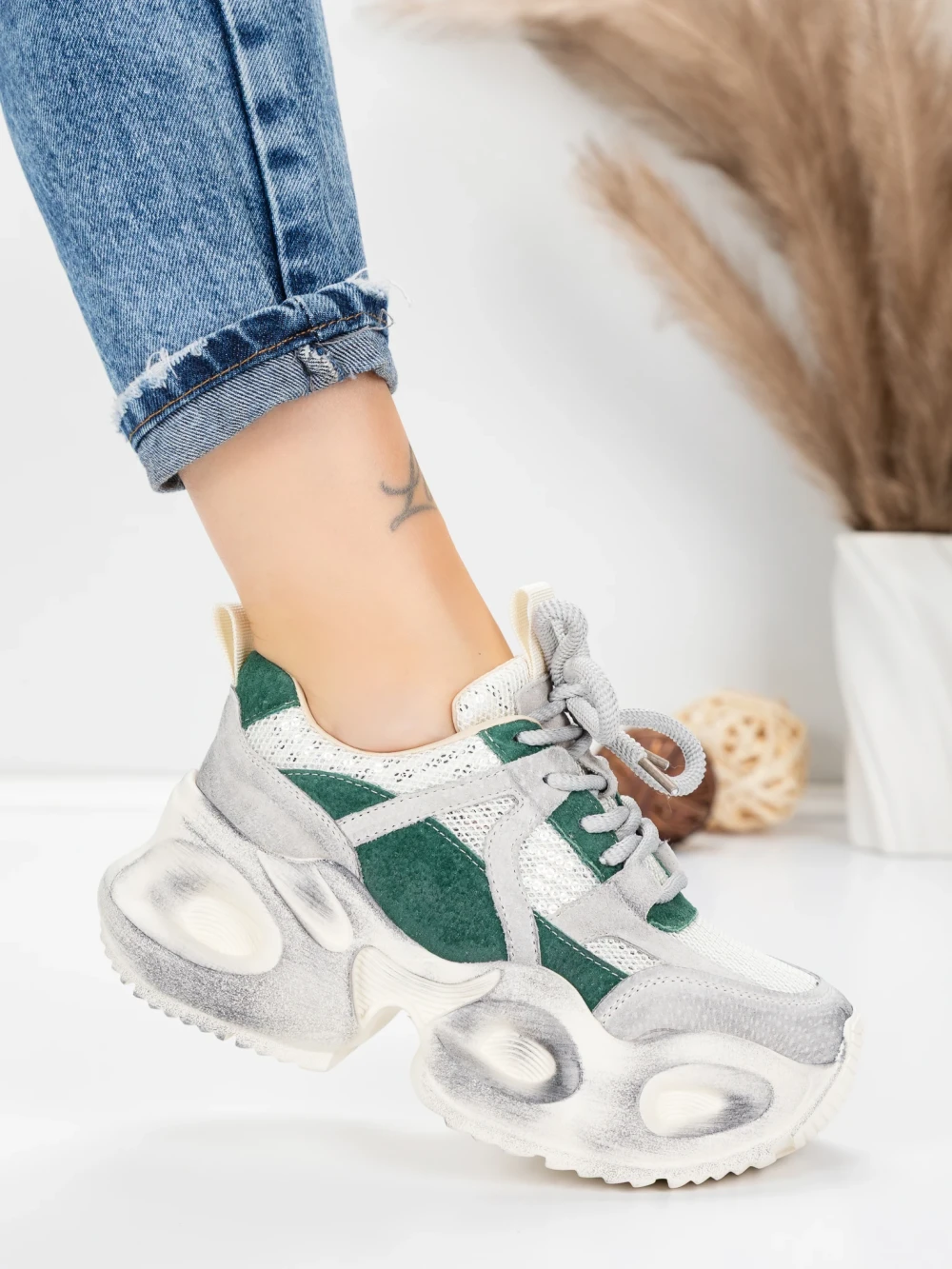 Pantofi Sport Dama din piele naturala HY8985 Verde-Gri | Franco Gerardo