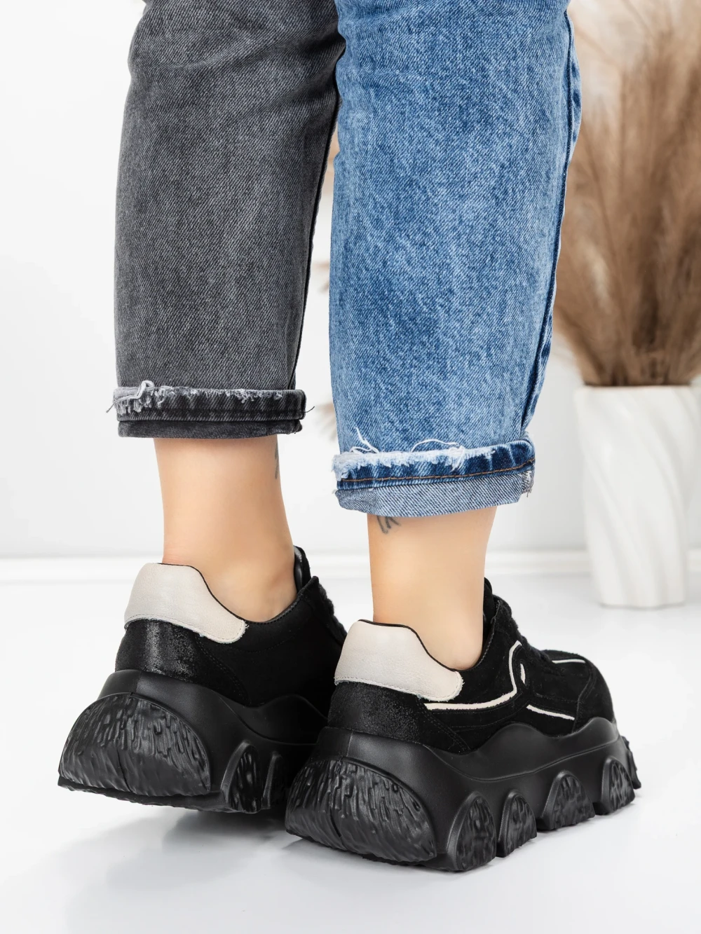 Pantofi Sport Dama din piele naturala KM9819 Negru | Franco Gerardo