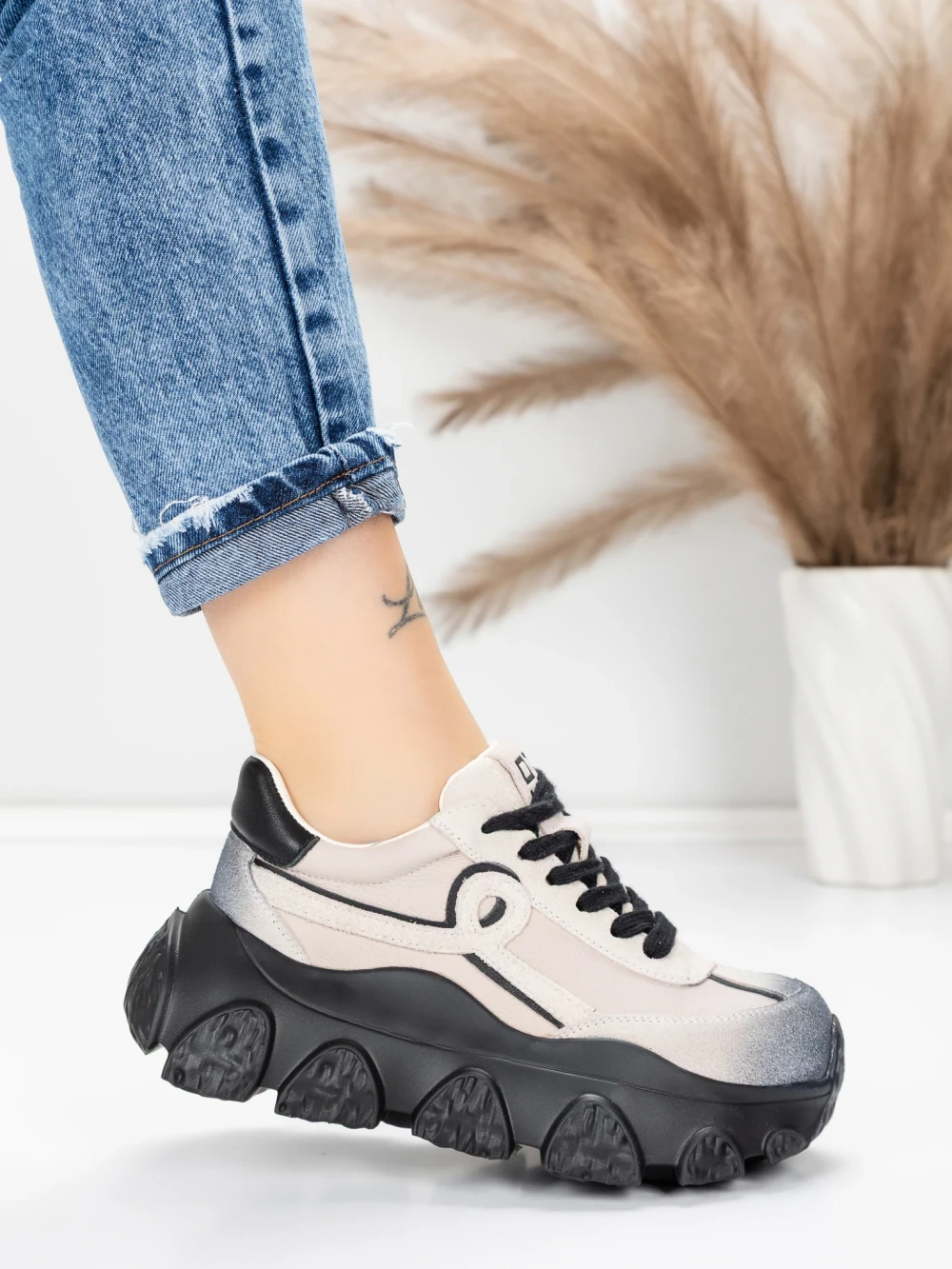 Pantofi Sport Dama din piele naturala N503 Crem | Advancer
