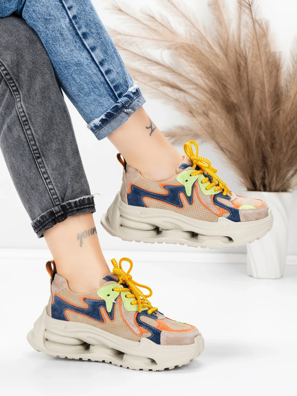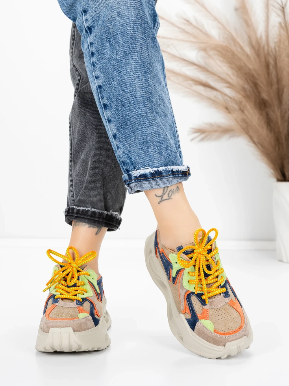 Pantofi Sport Dama din piele naturala 36823-1 Portocaliu | Advancer