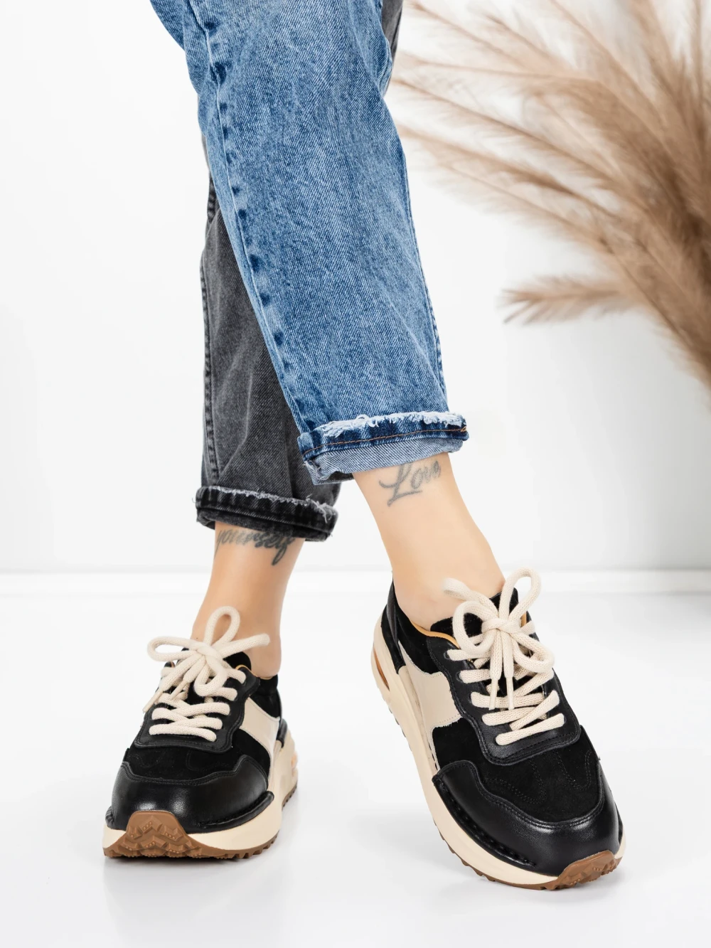 Pantofi Sport Dama din piele naturala KM0820 Negru | Advancer