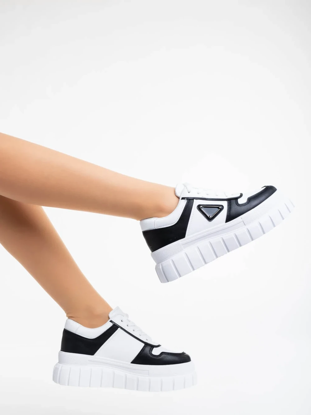 Pantofi sport dama albi cu albastru deschis din piele ecologica Tasnia