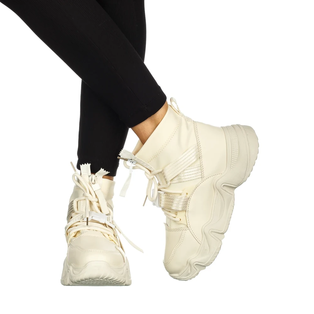 Pantofi sport dama albi cu sampanie din piele ecologica Rumeysa