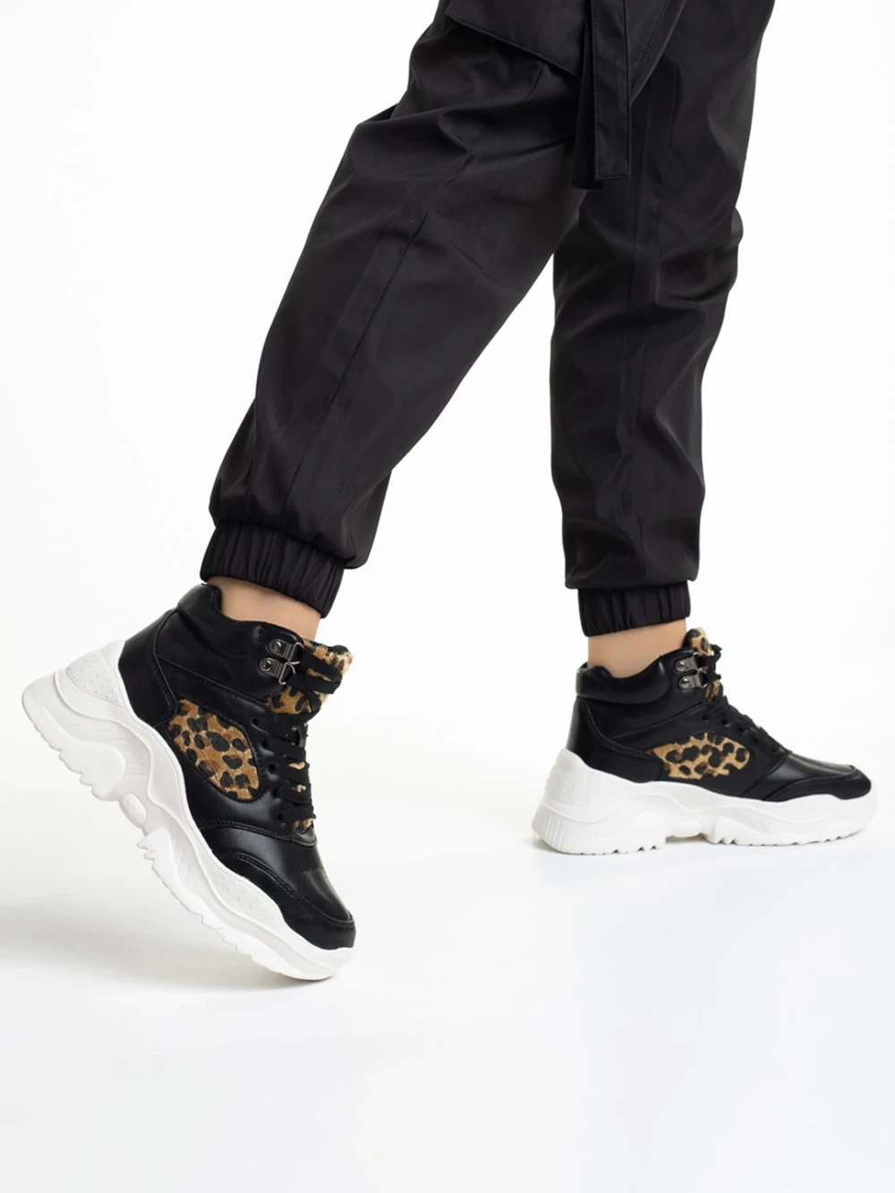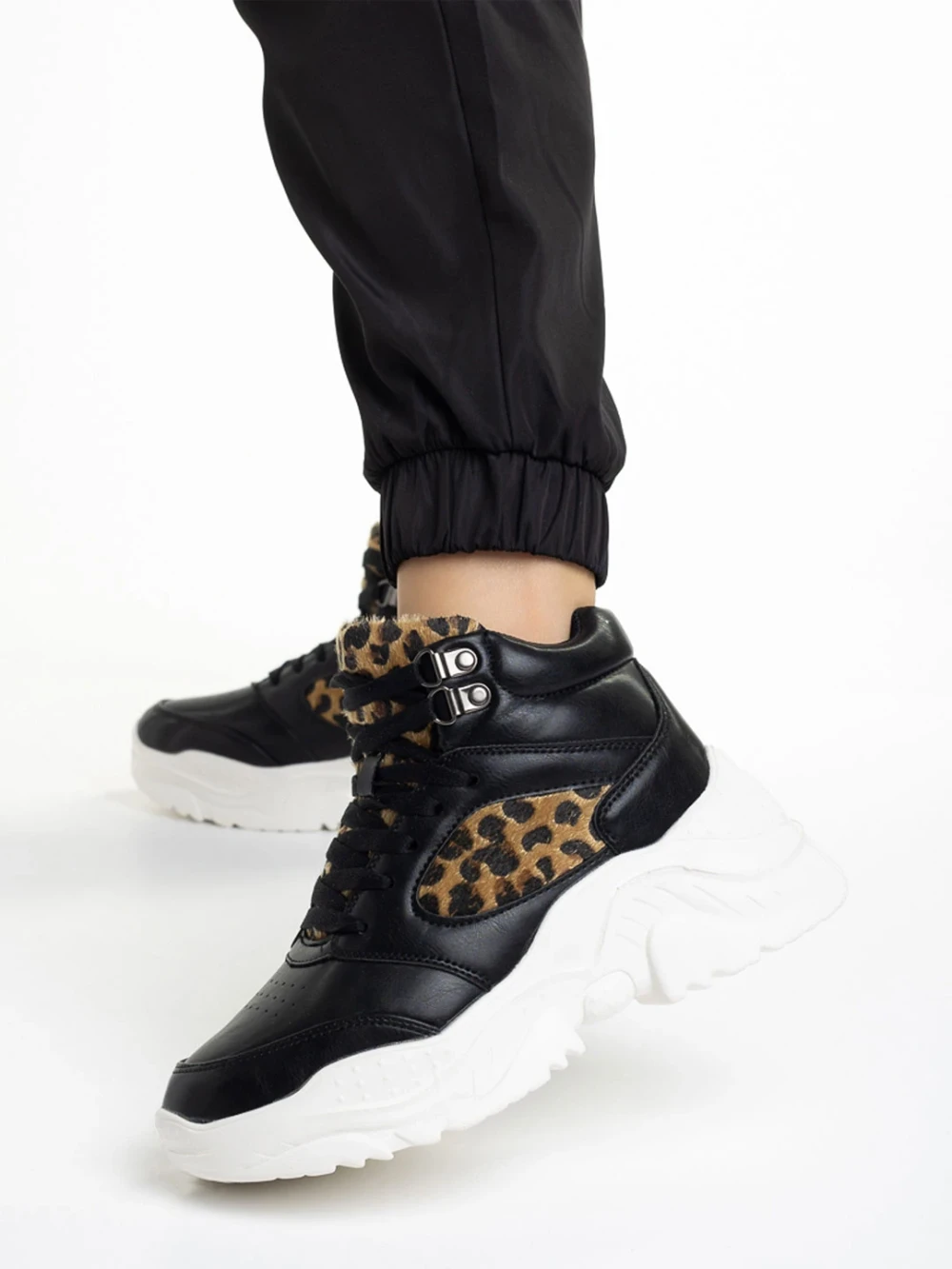 Pantofi sport dama negri din piele ecologica Renia