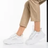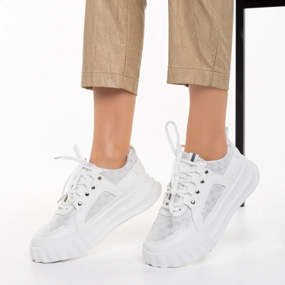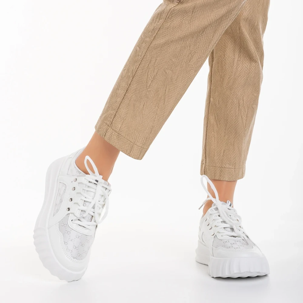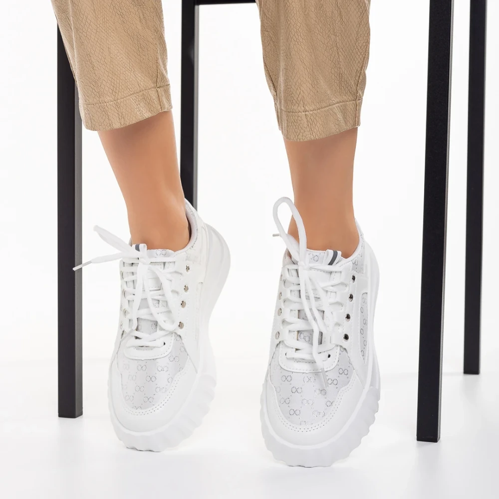 Pantofi sport dama albi din piele ecologica si material textil Meriz