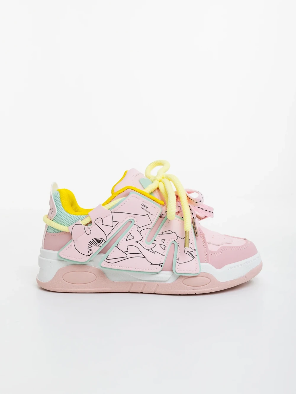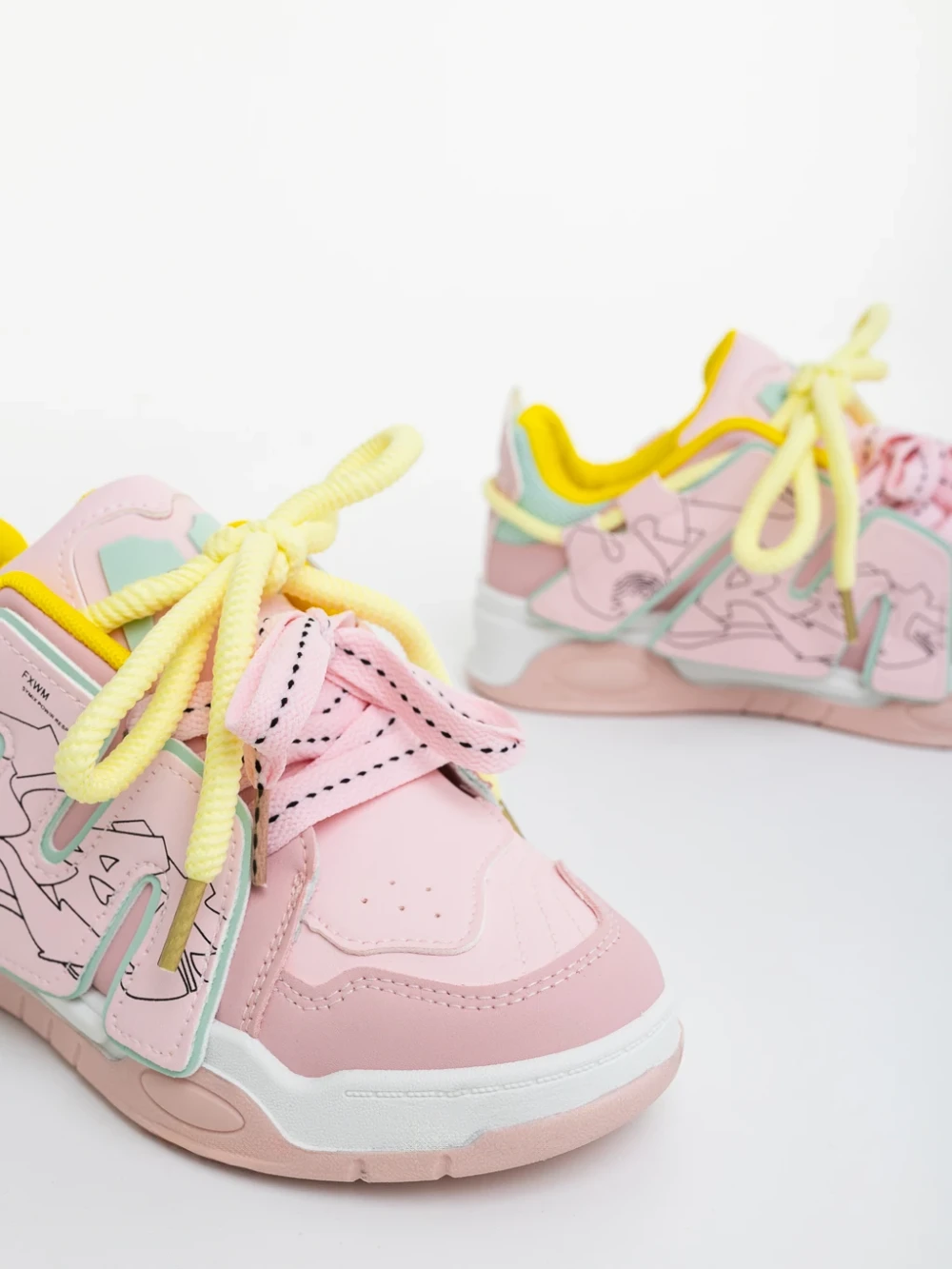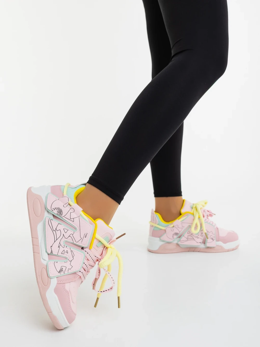 Pantofi sport dama roz cu galben din piele ecologica Osiana Detalii produs