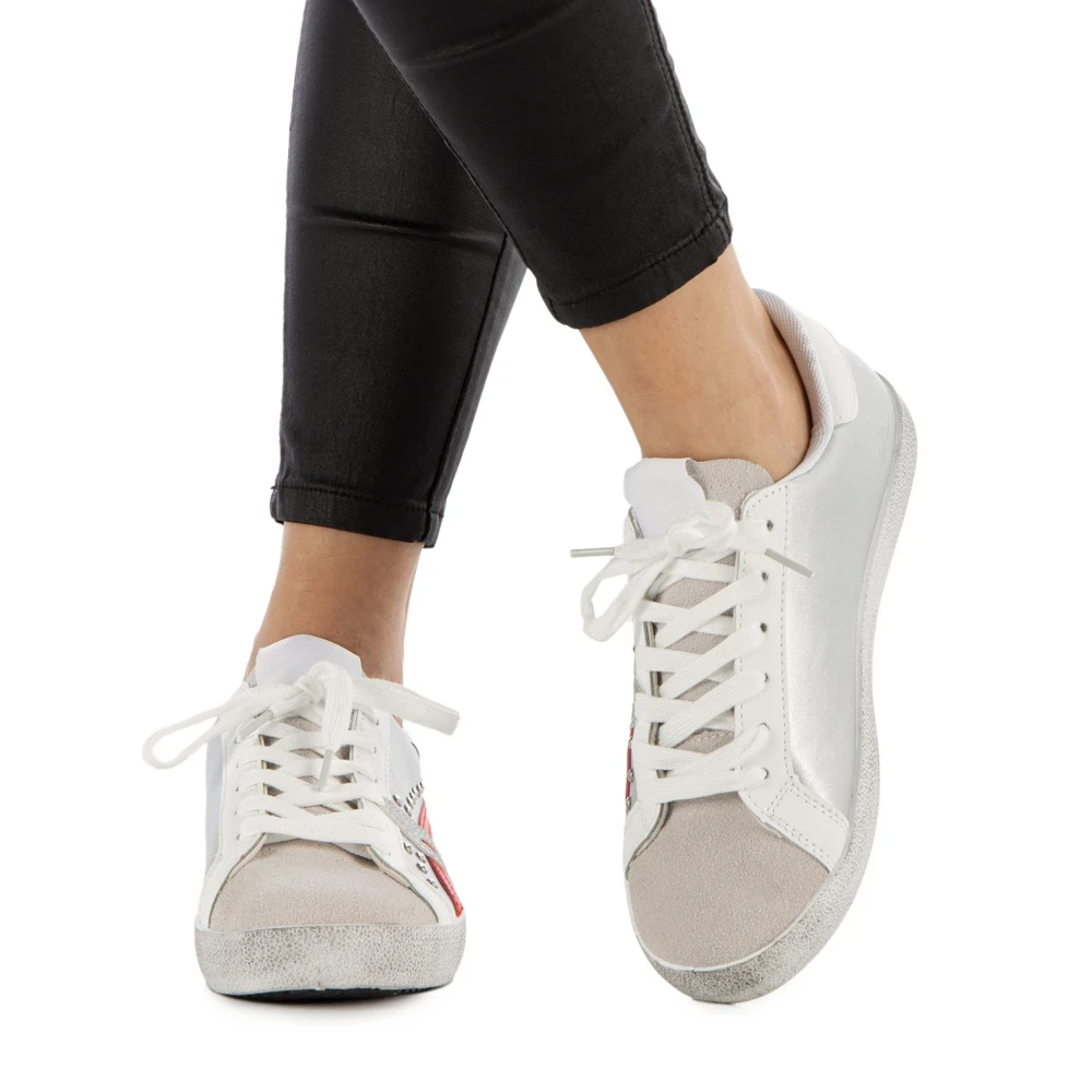 Pantofi sport dama bej din piele ecologica si material textil Nuzia