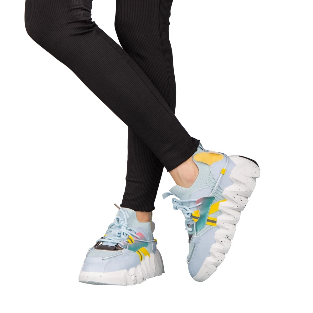 Pantofi sport dama albastri din piele ecologica si material textil Gingero