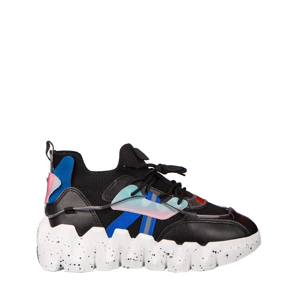 Pantofi sport dama negri din piele ecologica si material textil Gingero