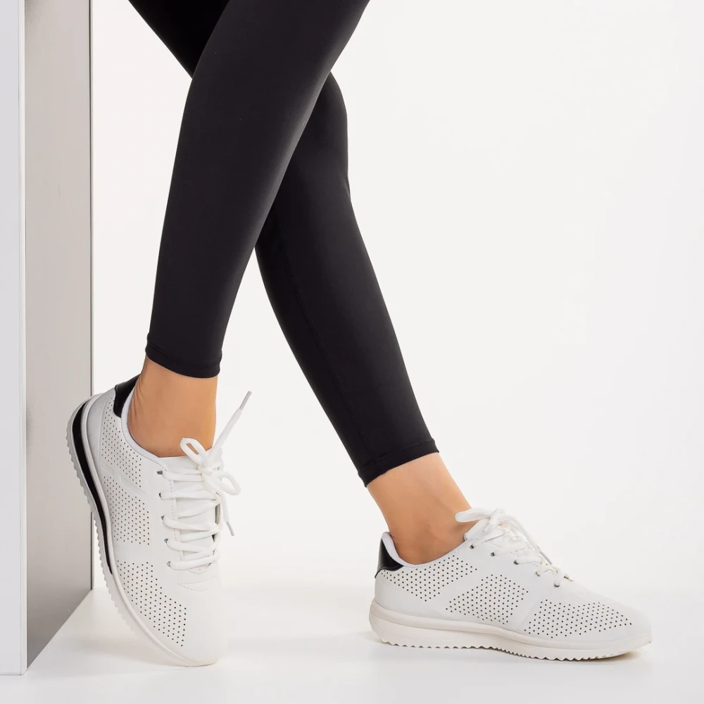Pantofi sport dama alb cu negru din piele ecologica Zolla