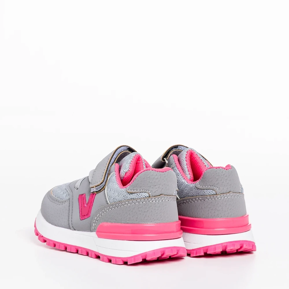 Pantofi sport copii gri cu roz din piele ecologica Rockie