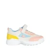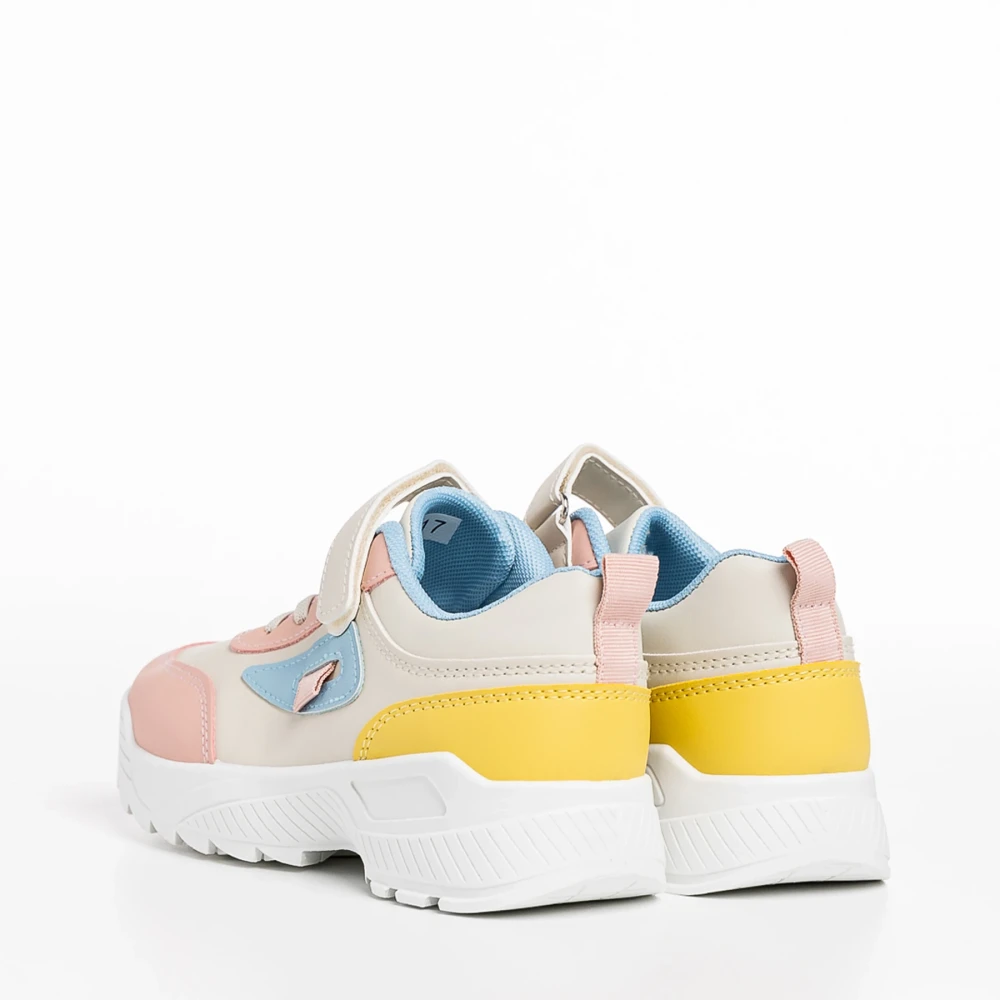 Pantofi sport copii bej cu roz si albastru din piele ecologica Rumaysa