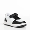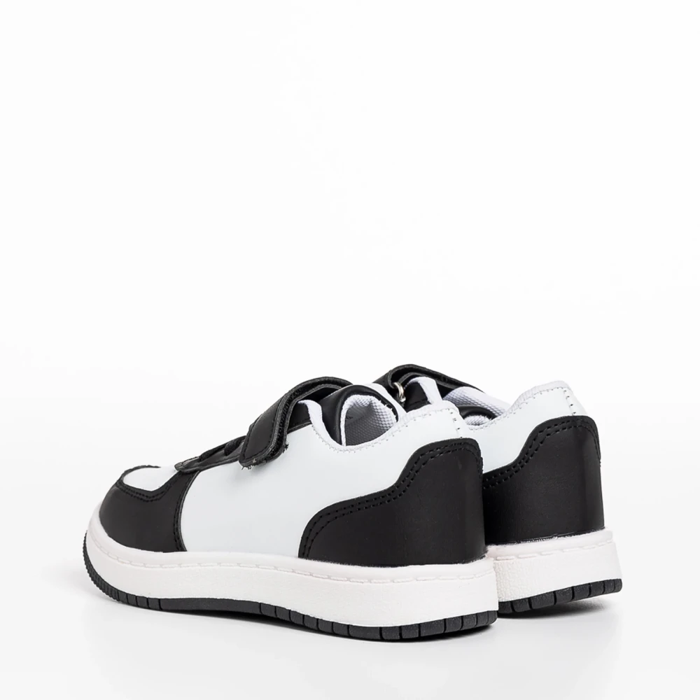 Pantofi sport copii albi cu negru din piele ecologica Ponty
