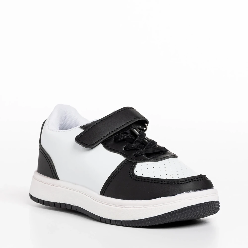 Pantofi sport copii albi cu negru din piele ecologica Ponty Detalii produs