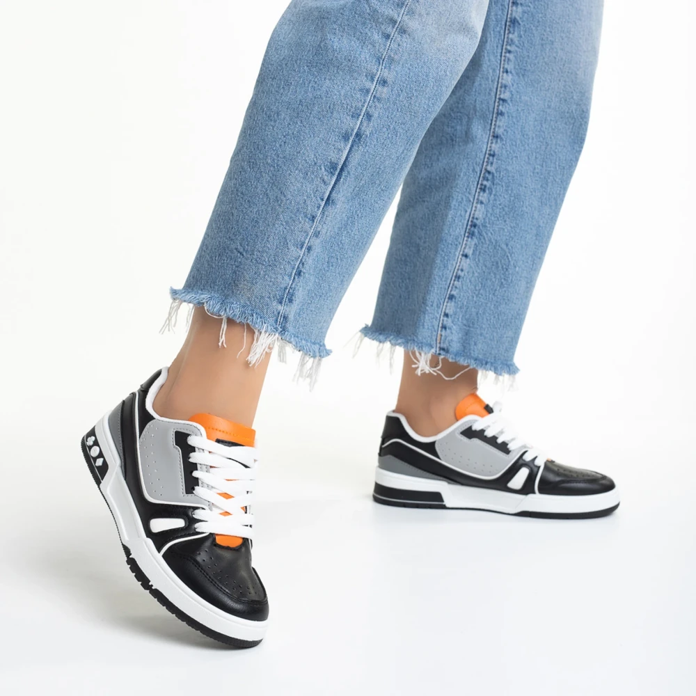 Pantofi sport dama negri din piele ecologica si material textil Raela Detalii produs