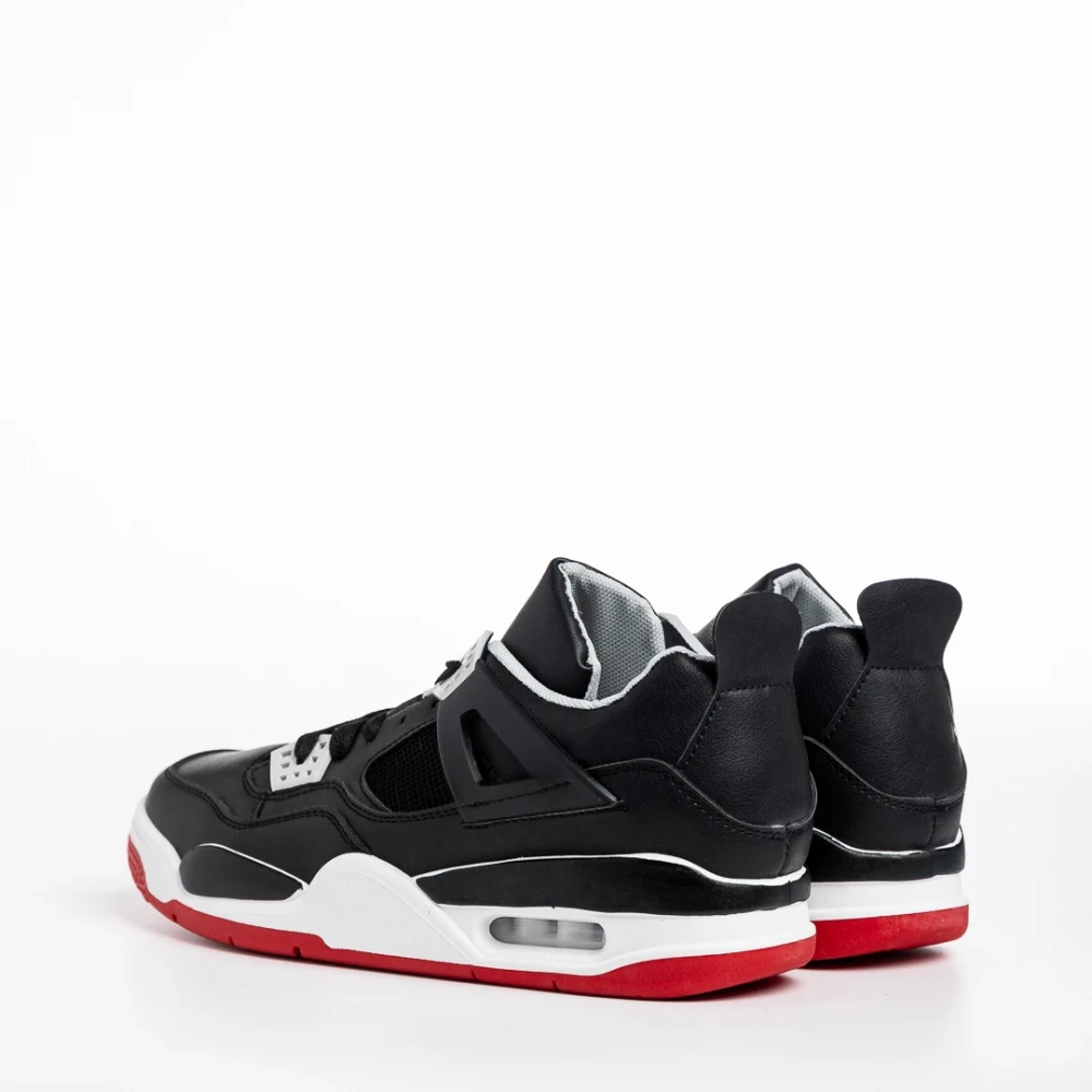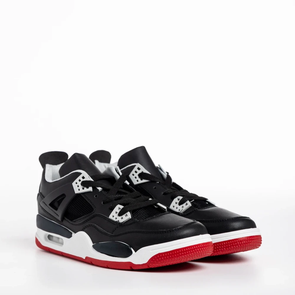 Pantofi sport barbati negri cu rosu din piele ecologica Abramo
