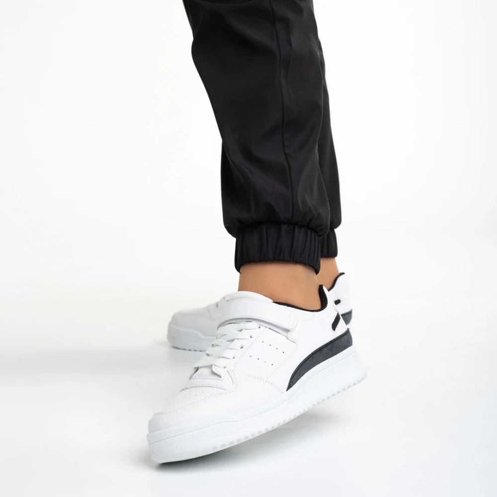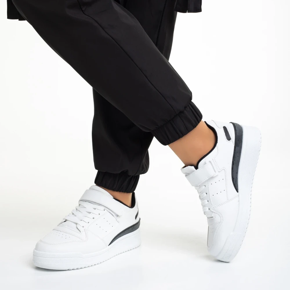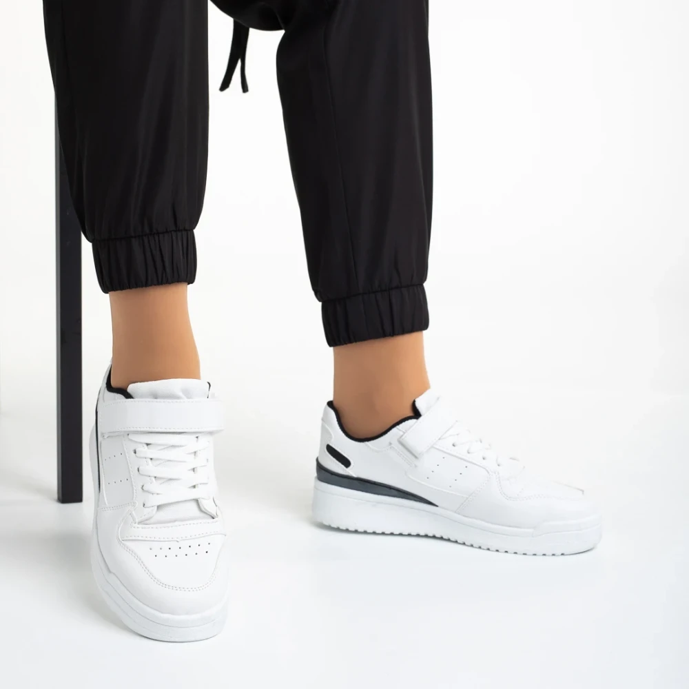 Pantofi sport dama albi cu verde din piele ecologica si material textil Zehara