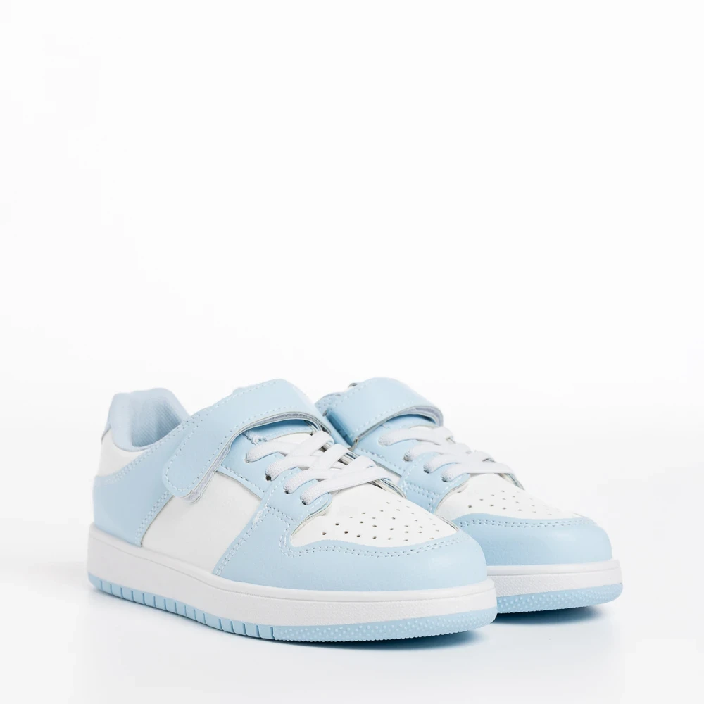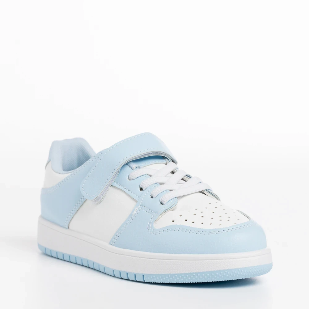 Pantofi sport copii albi cu albastru din piele ecologica Bristol