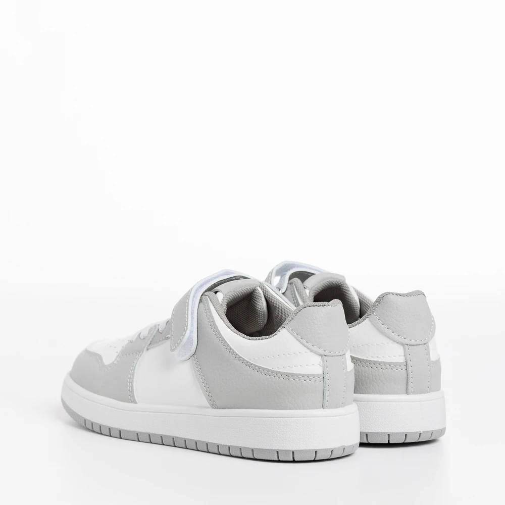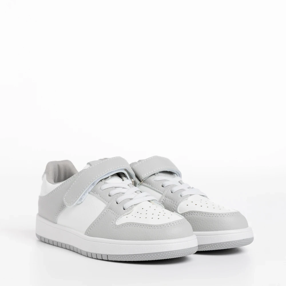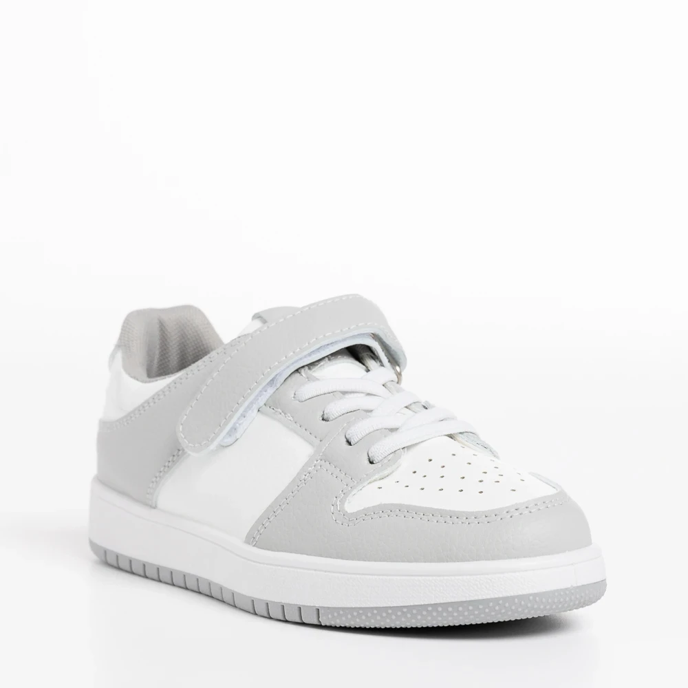 Pantofi sport copii albi cu gri din piele ecologica Bristol