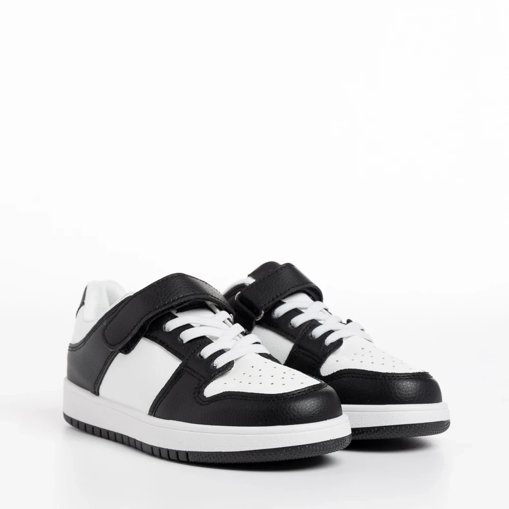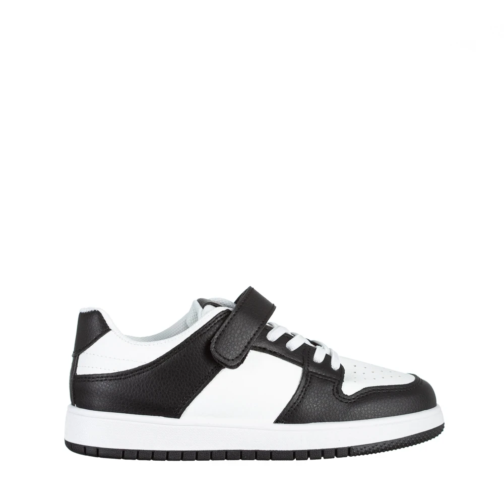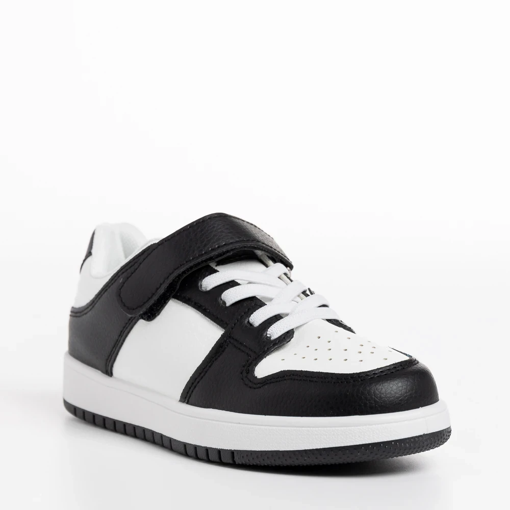 Pantofi sport copii albi cu negru din piele ecologica Bristol