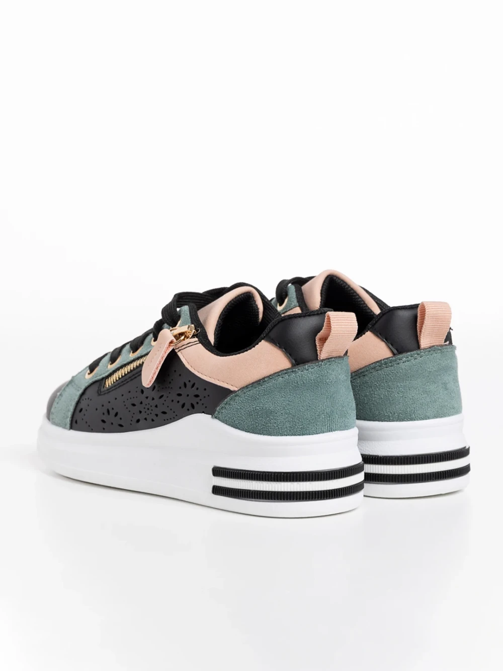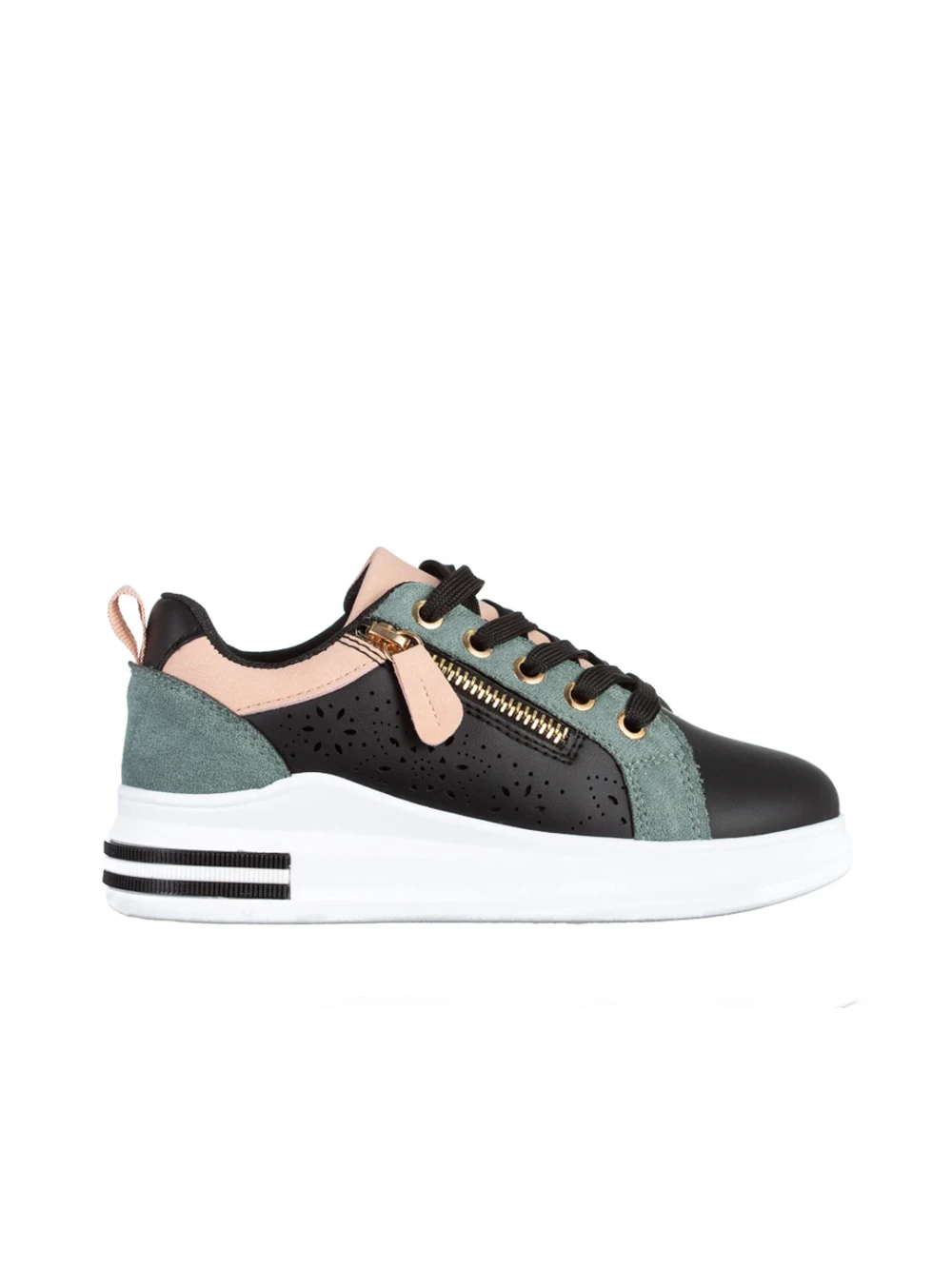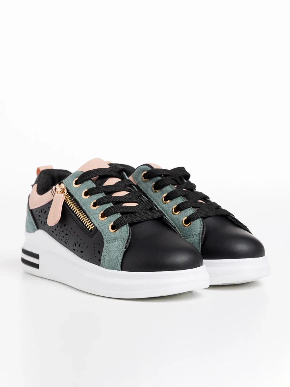 Pantofi sport copii albi cu negru din piele ecologica Ponty