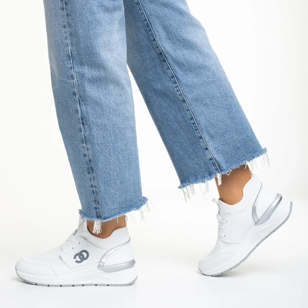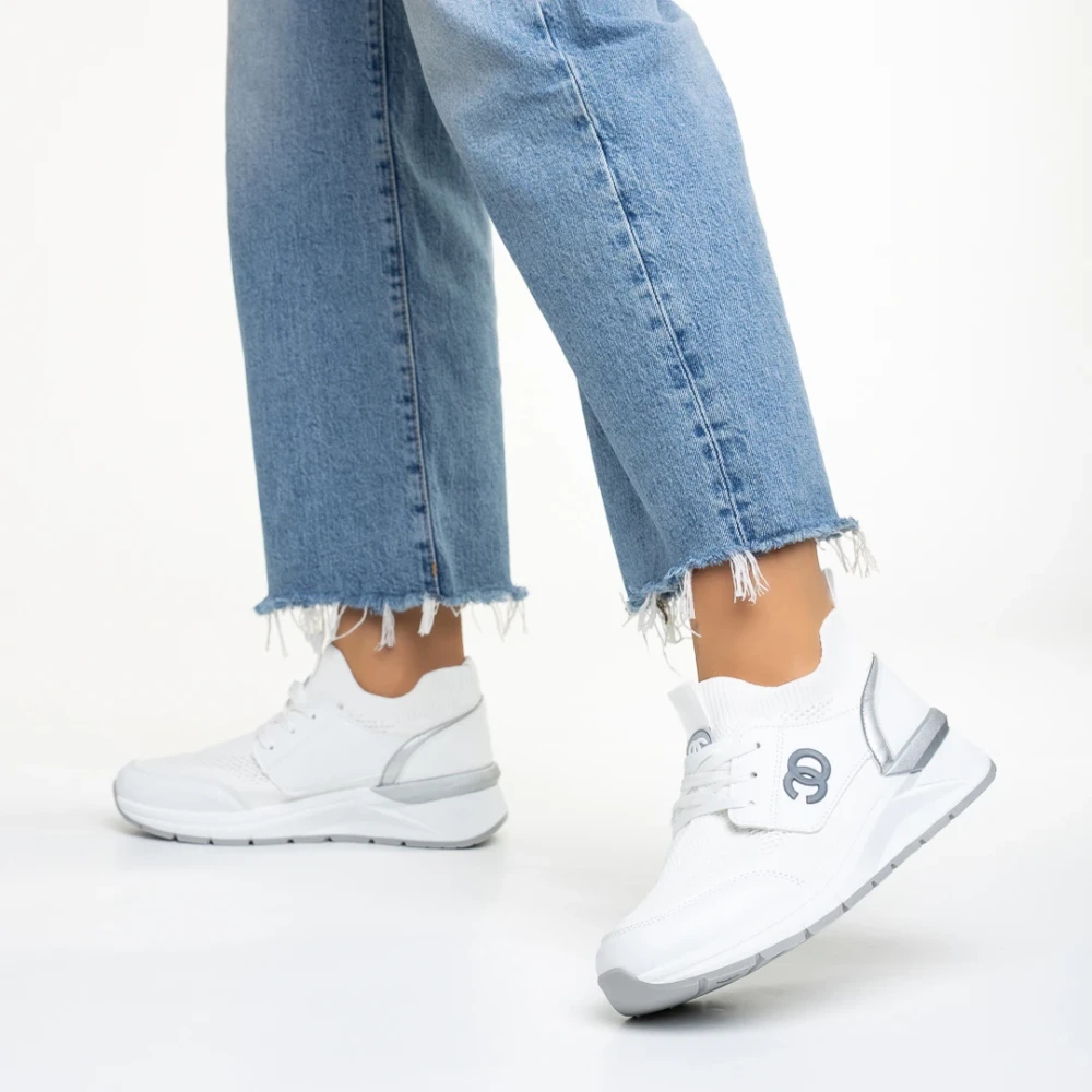 Pantofi sport dama albi din piele ecologica si material textil Nairobi