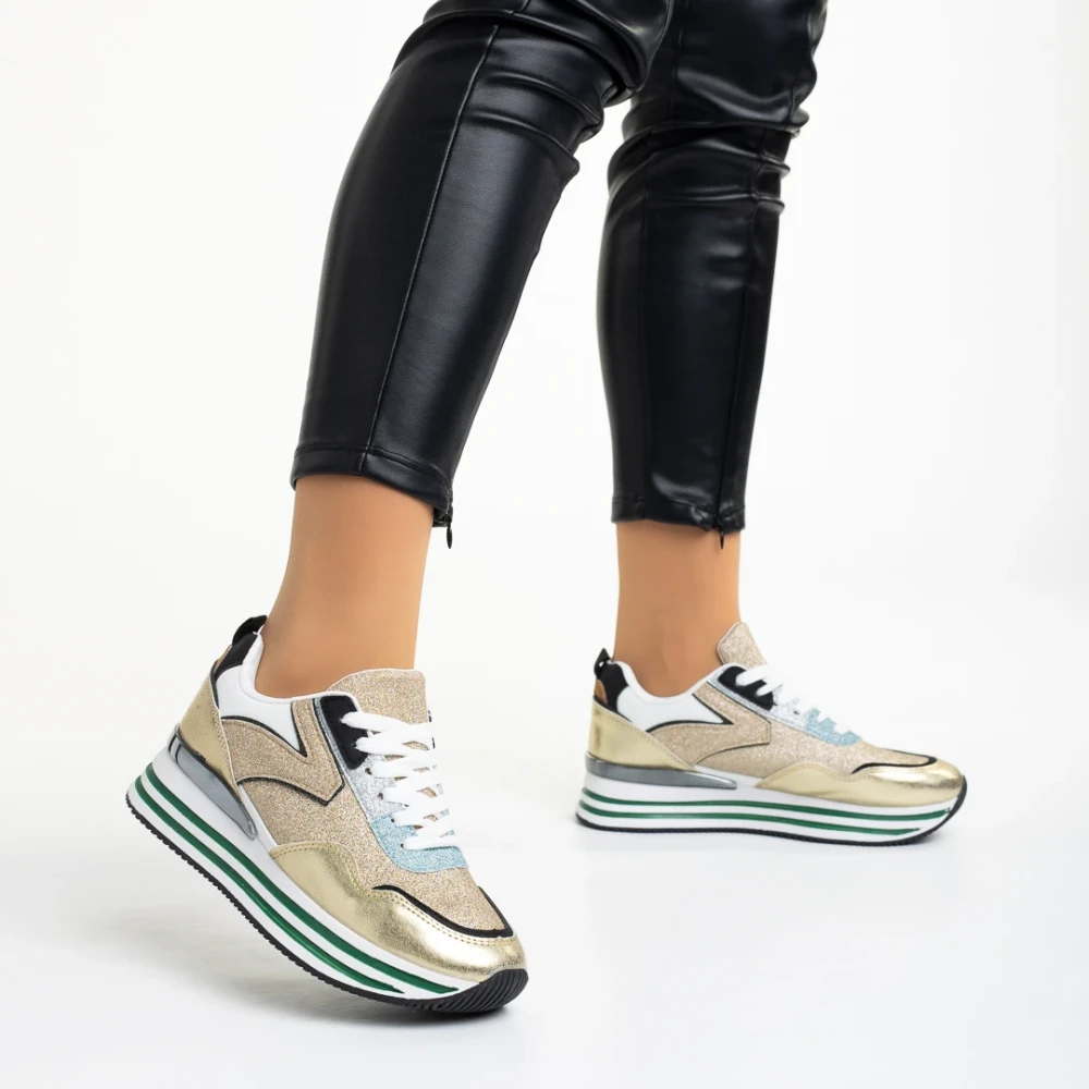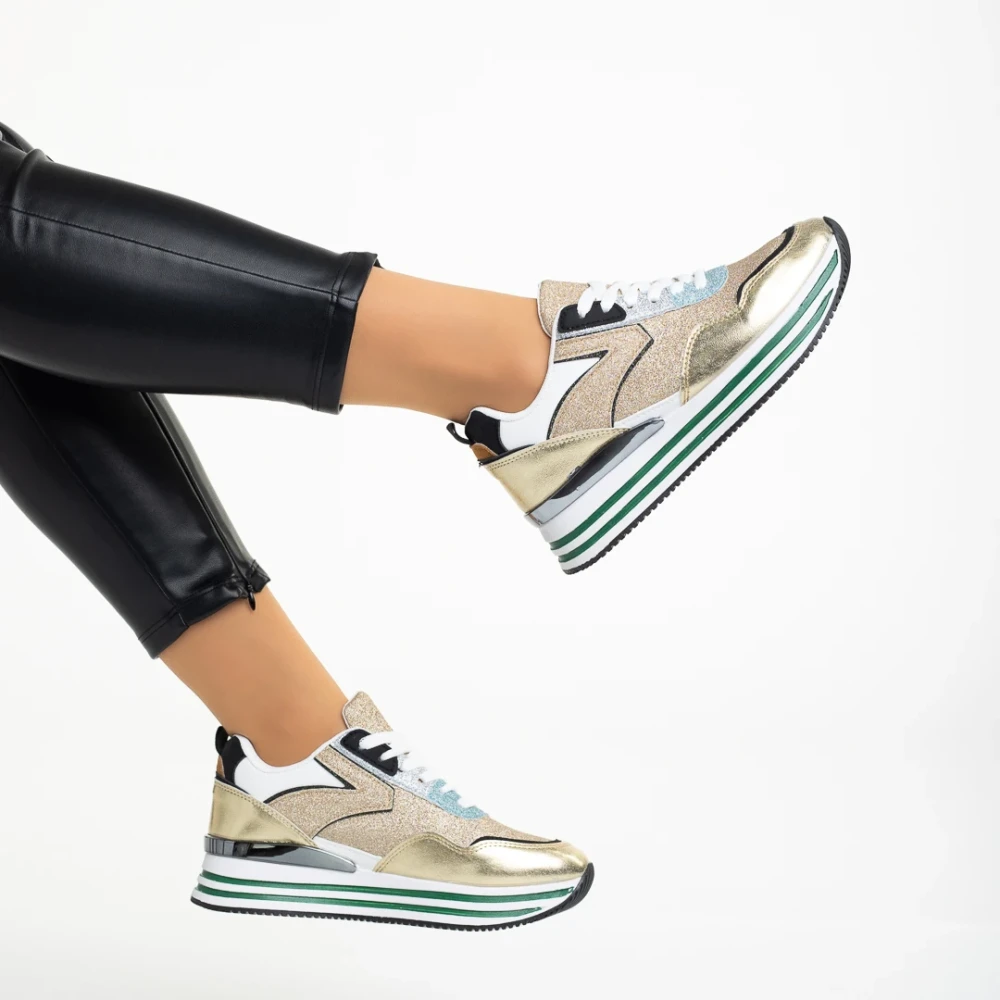 Pantofi sport dama aurii din piele ecologica si material textil Dottie