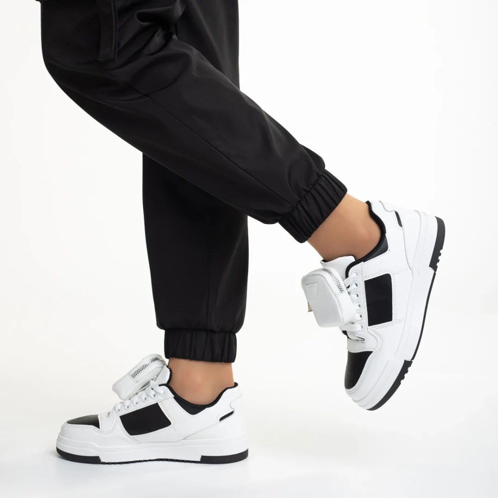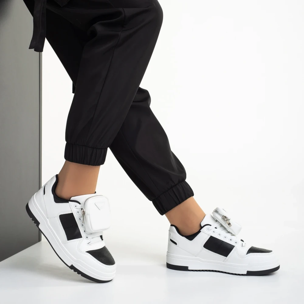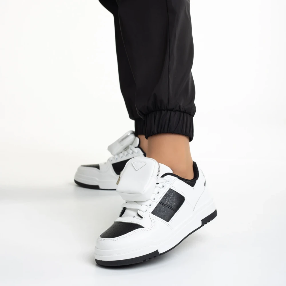 Pantofi sport dama albi cu negru din piele ecologica Inola