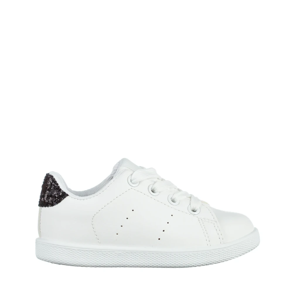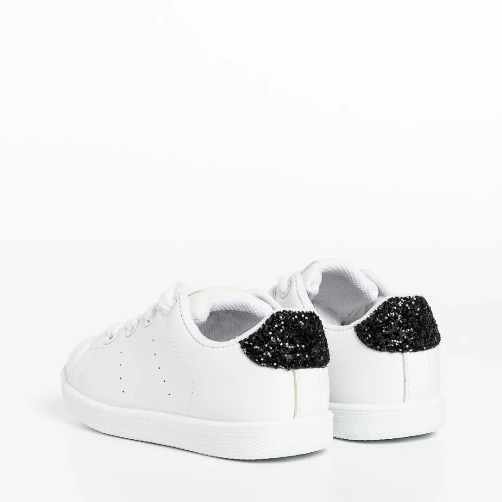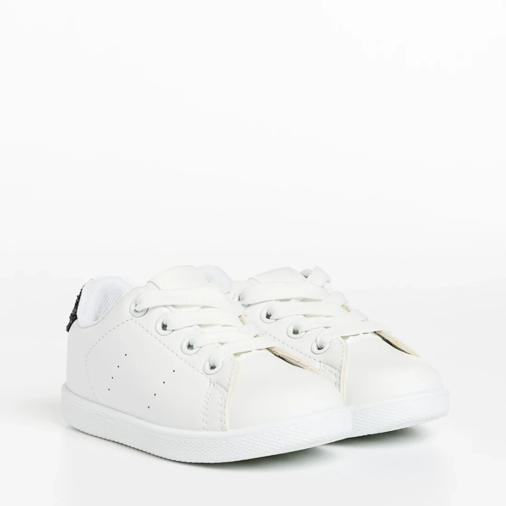 Pantofi sport copii albI cu negru din piele ecologica Omar Detalii produs