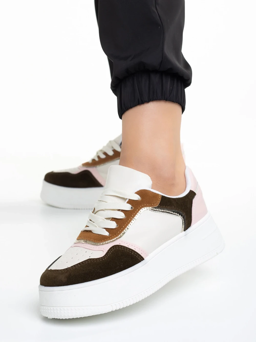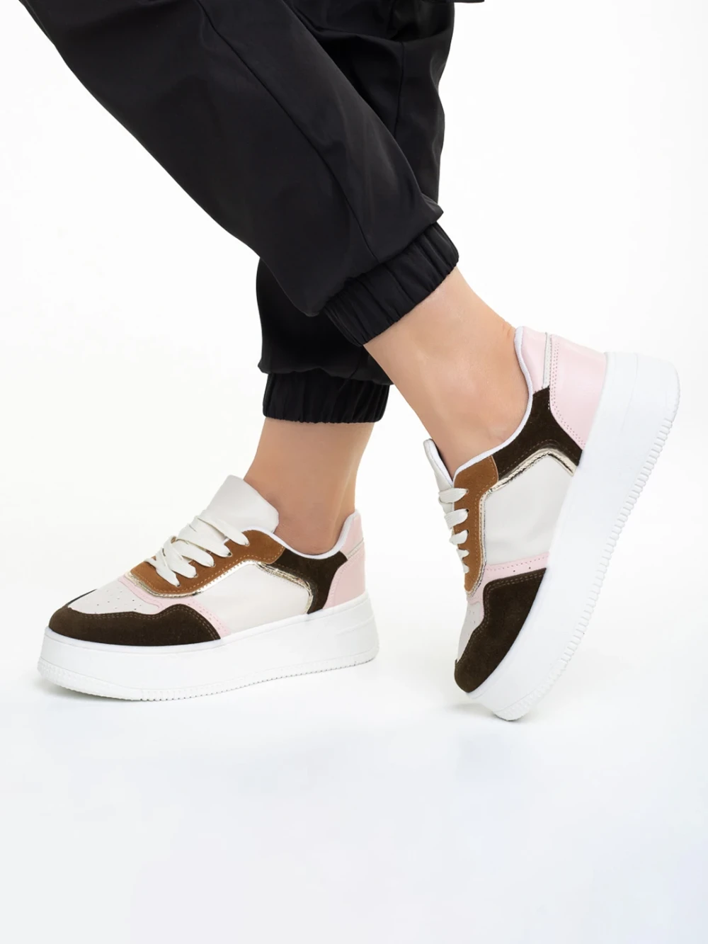 Pantofi sport dama bej cu roz din piele ecologica Jaylin