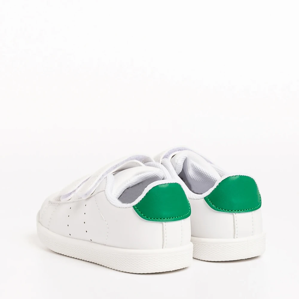 Pantofi sport copii albi cu verde din piele ecologica Barney