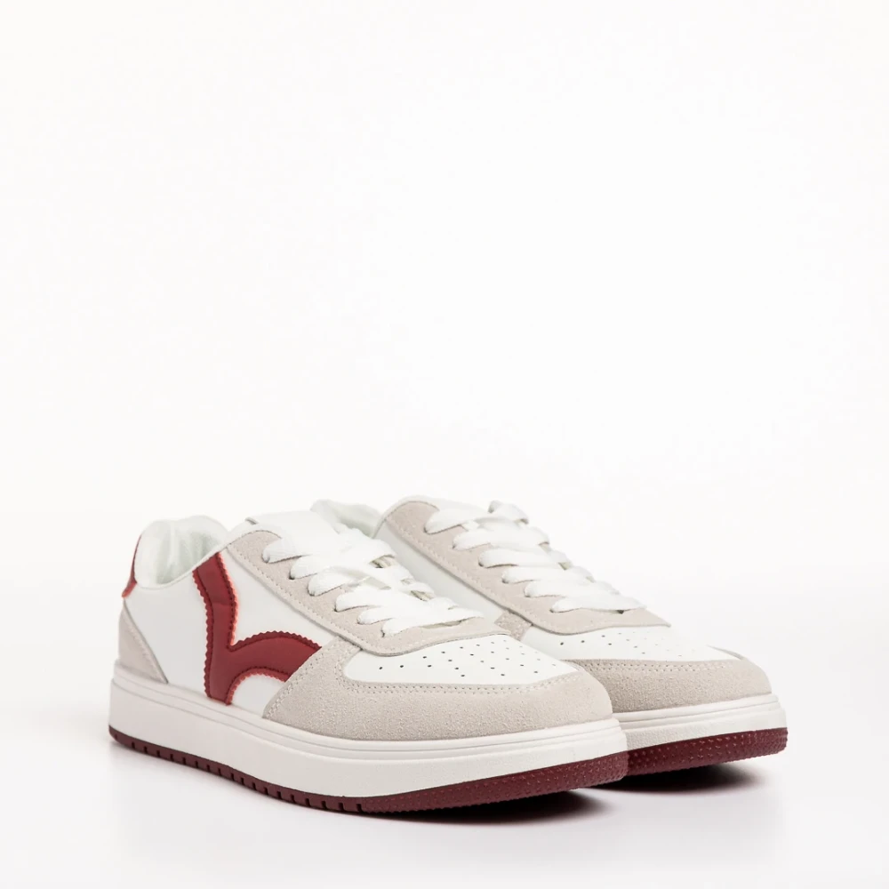 Pantofi sport dama albi din piele ecologica si material textil Raelin