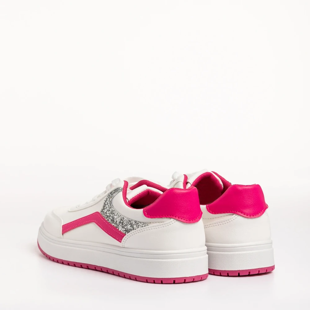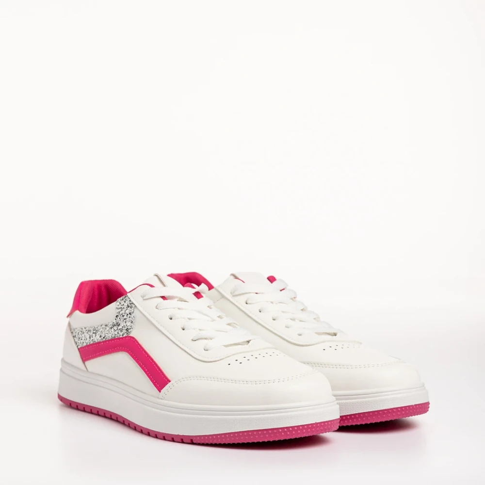 Pantofi sport dama albi cu fucsia din piele ecologica Damiana Detalii produs