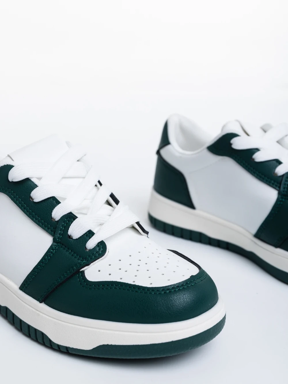 Pantofi sport dama albi cu verde din piele ecologica Narine Detalii produs