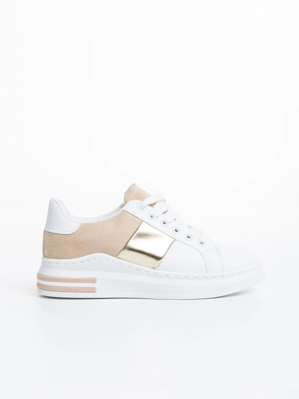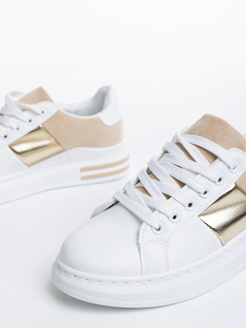 Pantofi sport dama albi cu bej din piele ecologica Nedelya