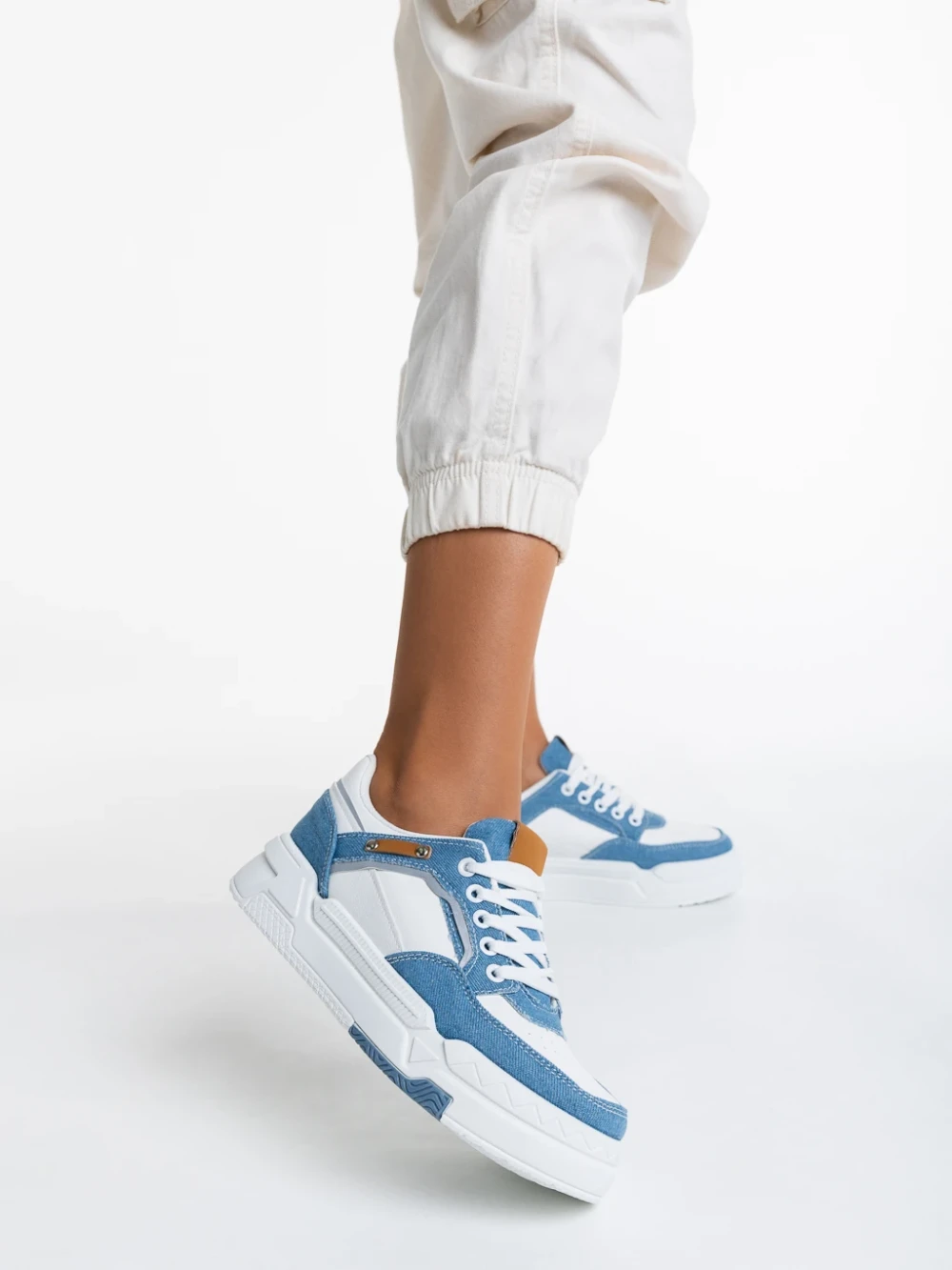 Pantofi sport dama albi cu albastru deschis din piele ecologica Tasnia Detalii produs