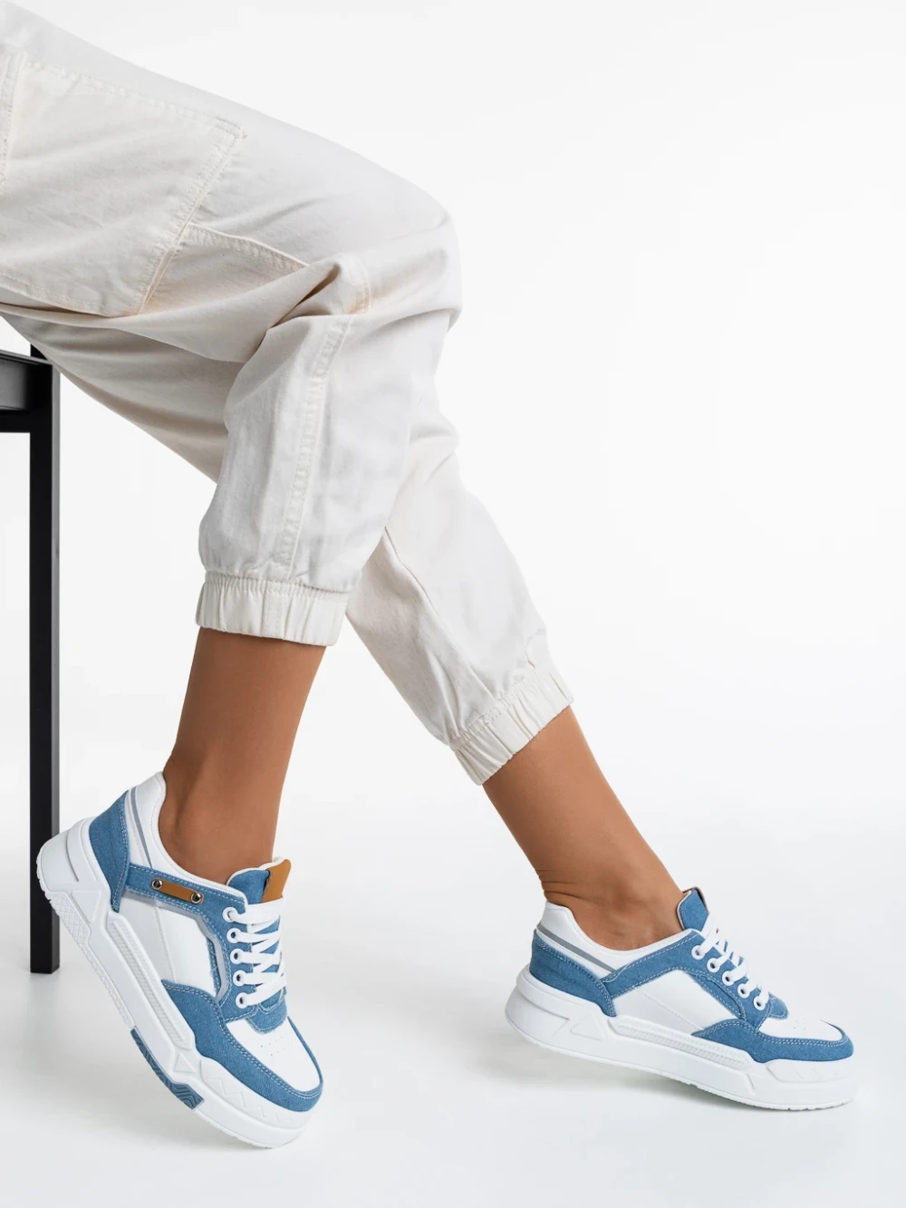 Pantofi sport dama albi cu albastru deschis din piele ecologica Tasnia