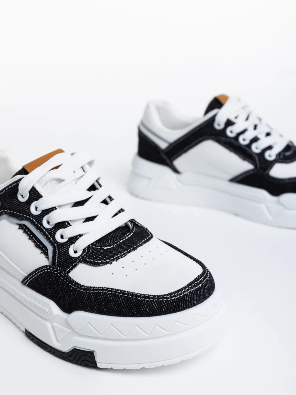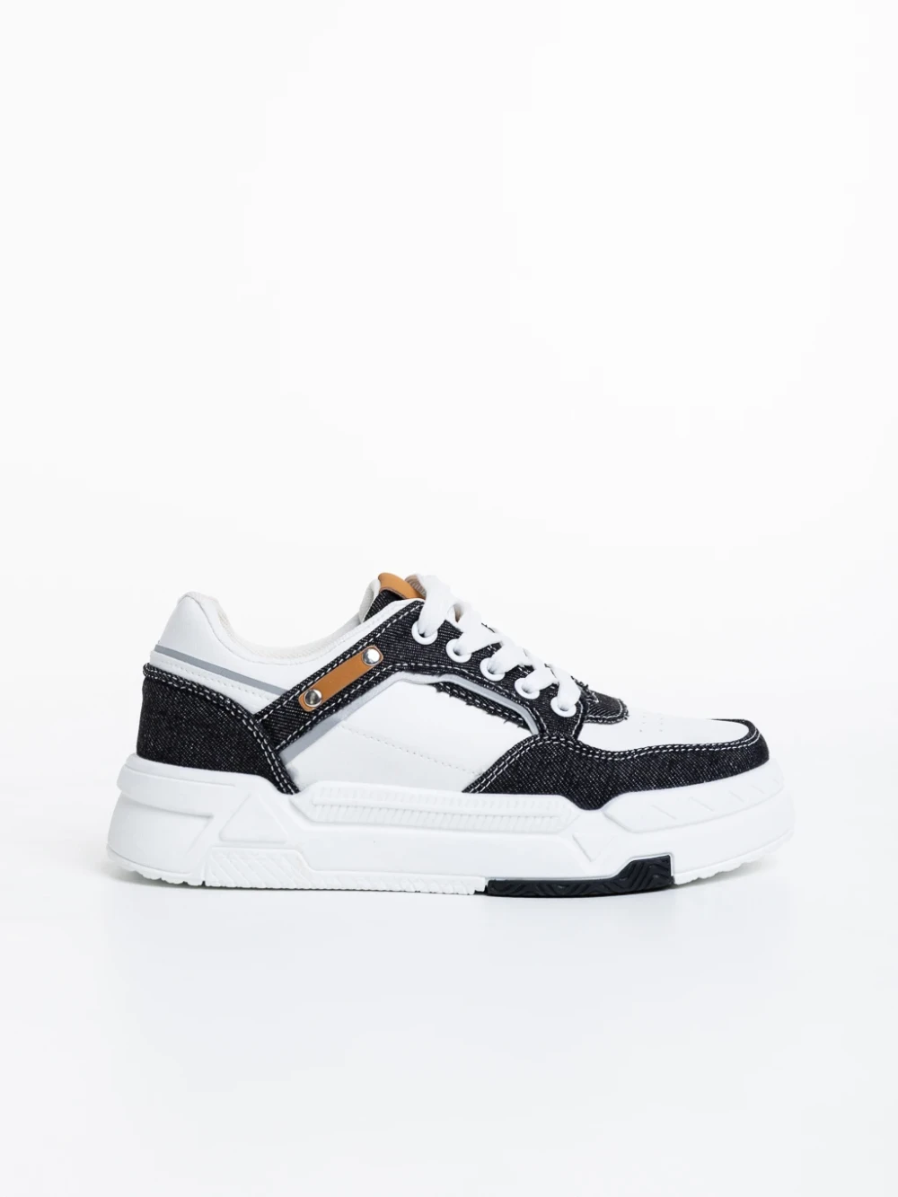 Pantofi sport dama negri cu alb din piele ecologica Tasnia Detalii produs