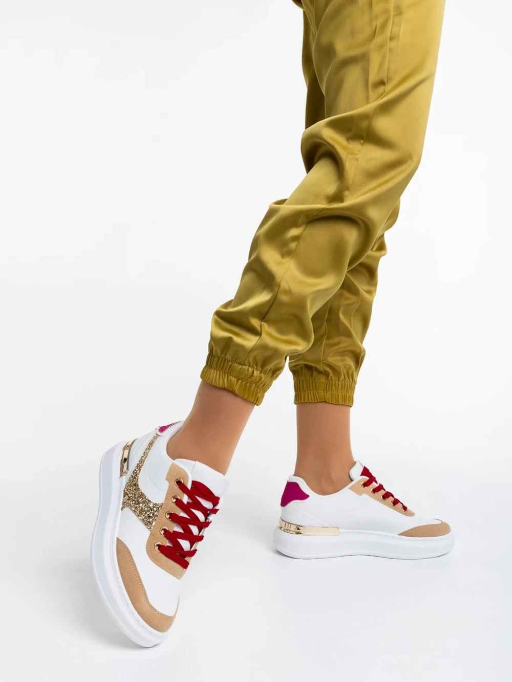 Pantofi sport dama albi cu auriu din piele ecologica Samya Detalii produs