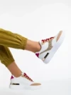 Pantofi sport dama albi cu auriu din piele ecologica Samya