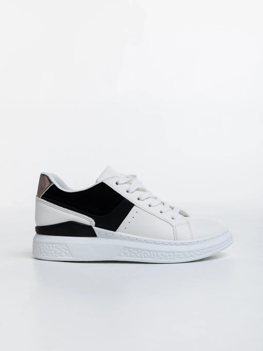 Pantofi sport dama albi cu negru din piele ecologica Alisha