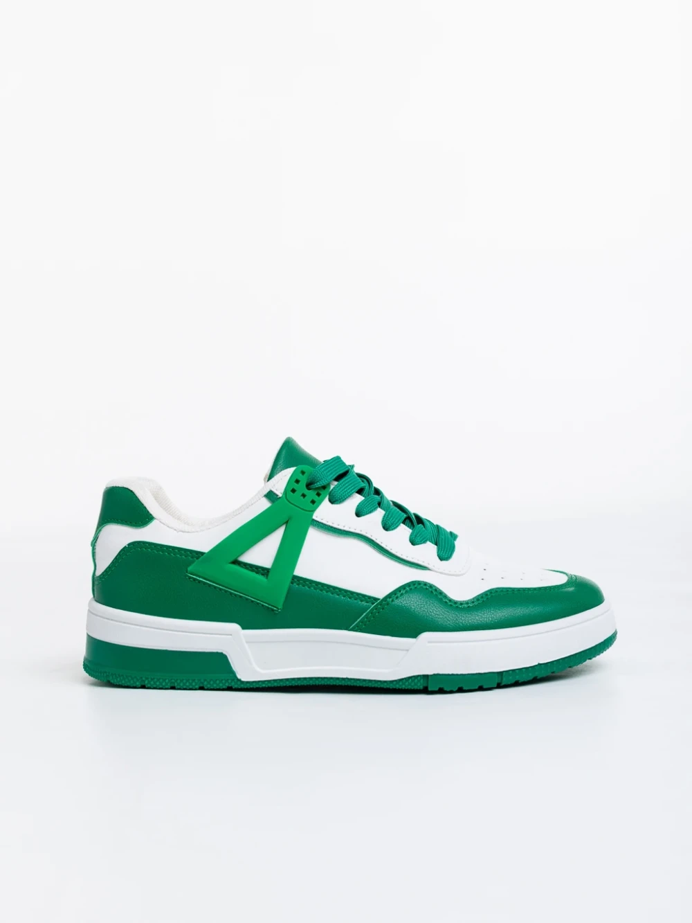 Pantofi sport dama albi cu verde din piele ecologica Milla