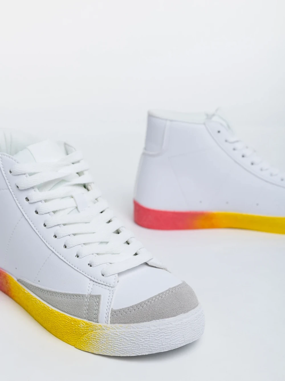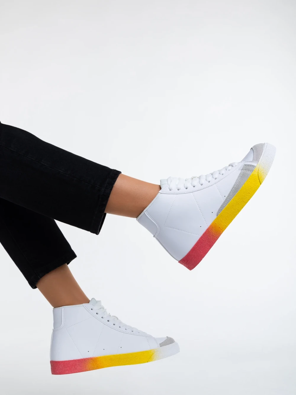 Pantofi sport dama albi cu galben din piele ecologica Kianna Detalii produs