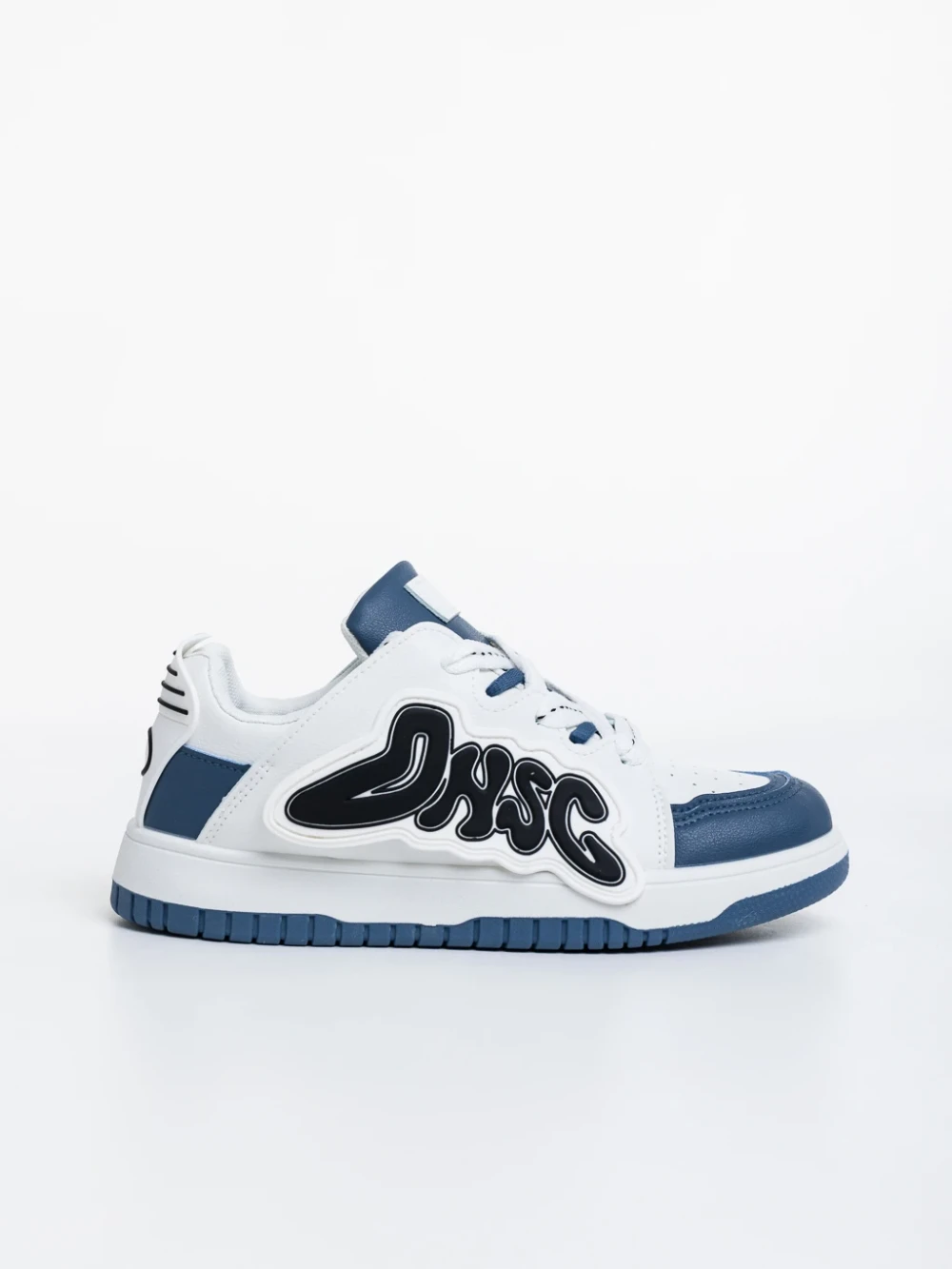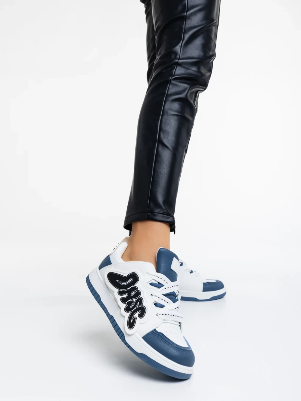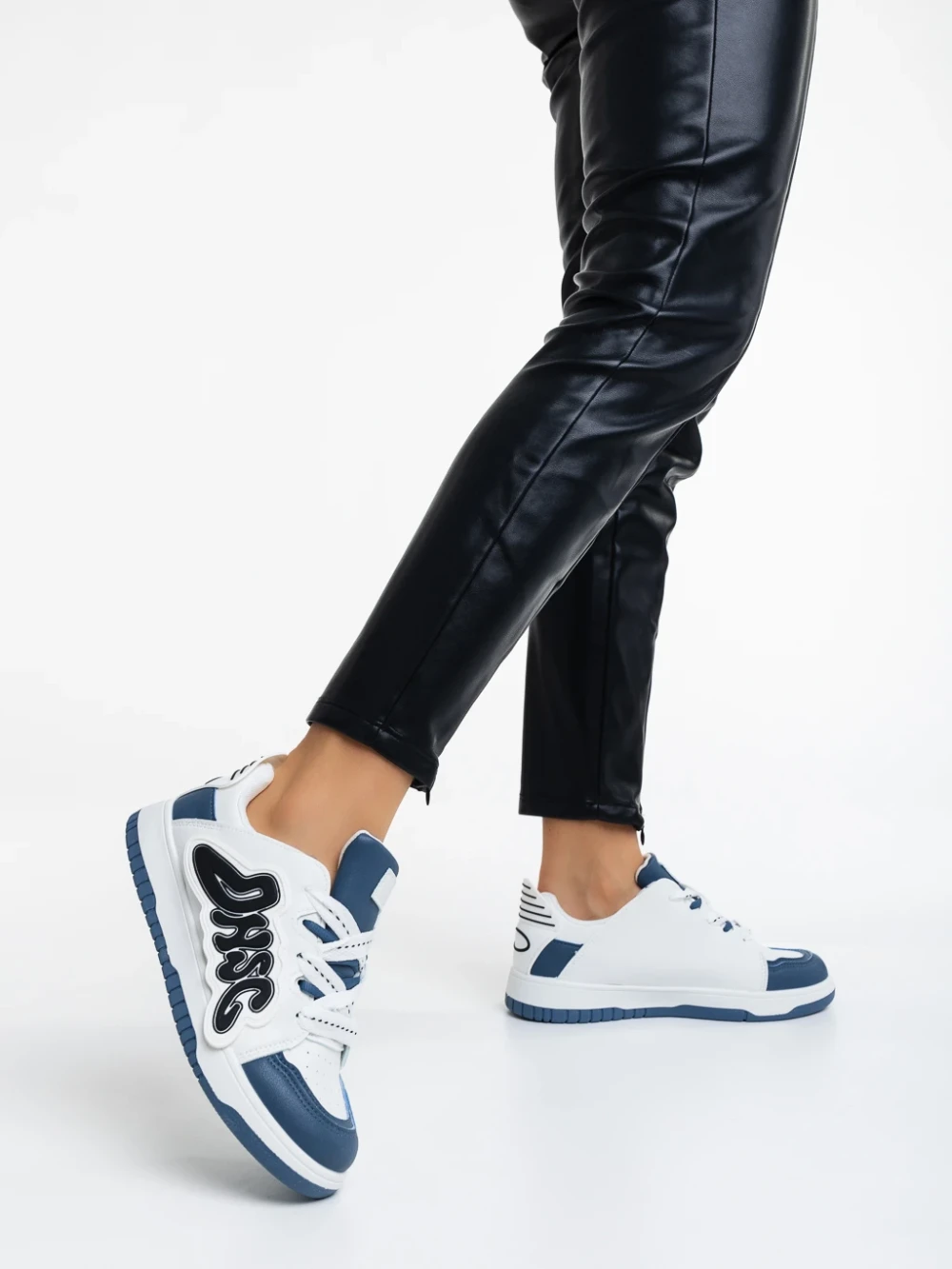 Pantofi sport dama albi cu albastru din piele ecologica Azurine