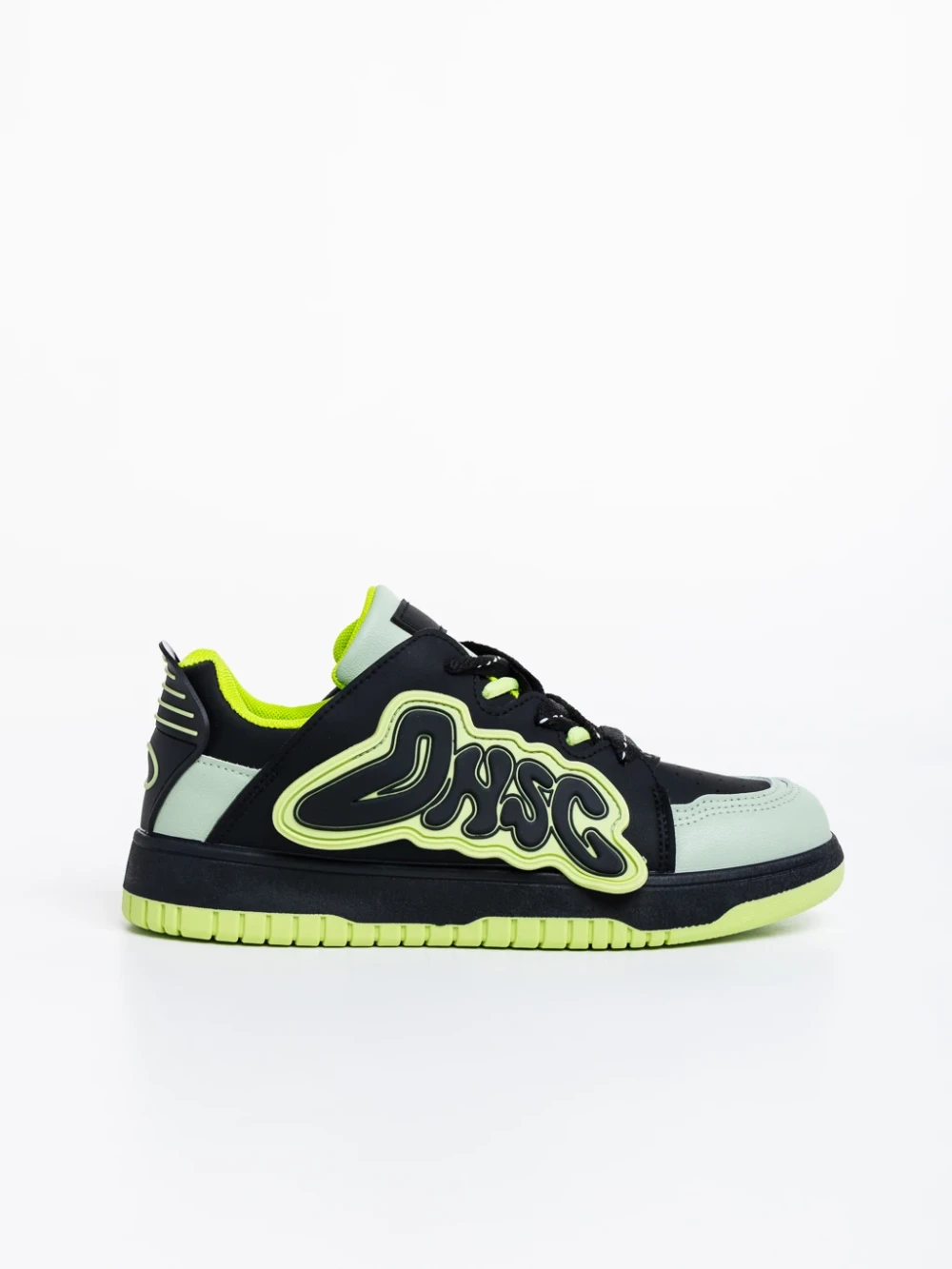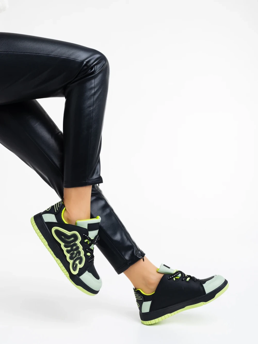 Pantofi sport dama negri cu verde din piele ecologica Azurine Detalii produs