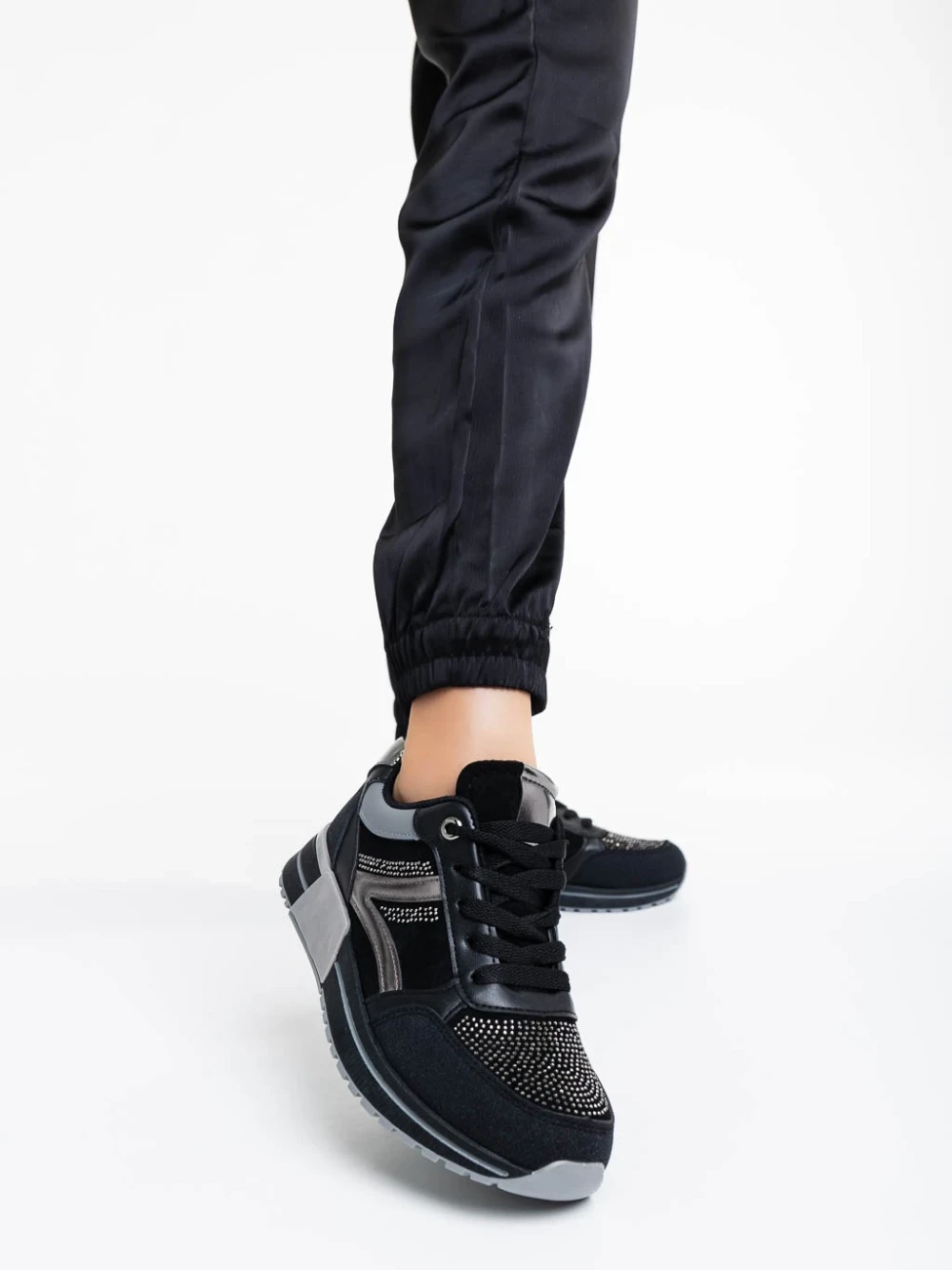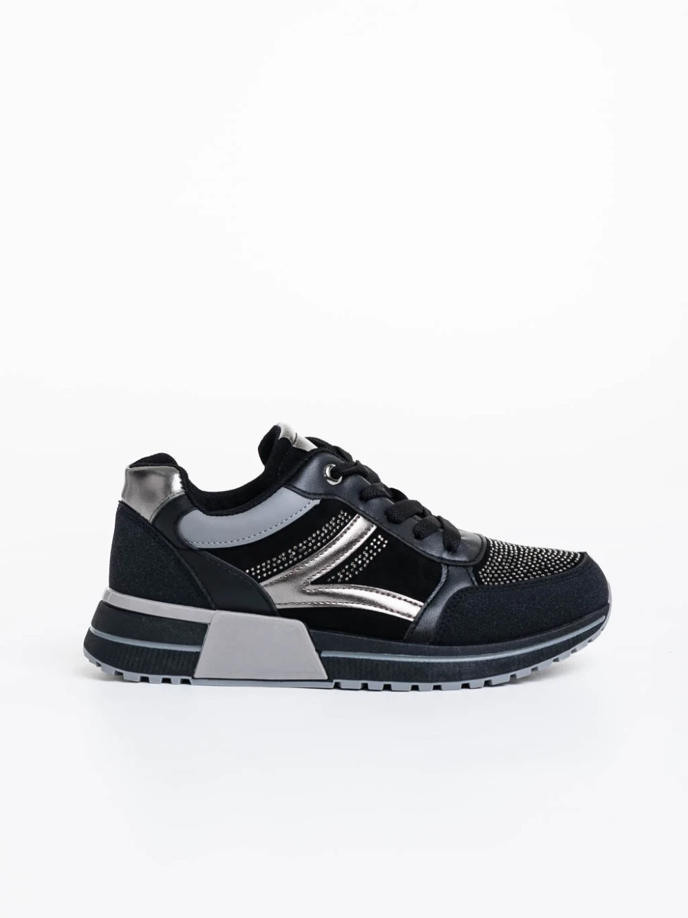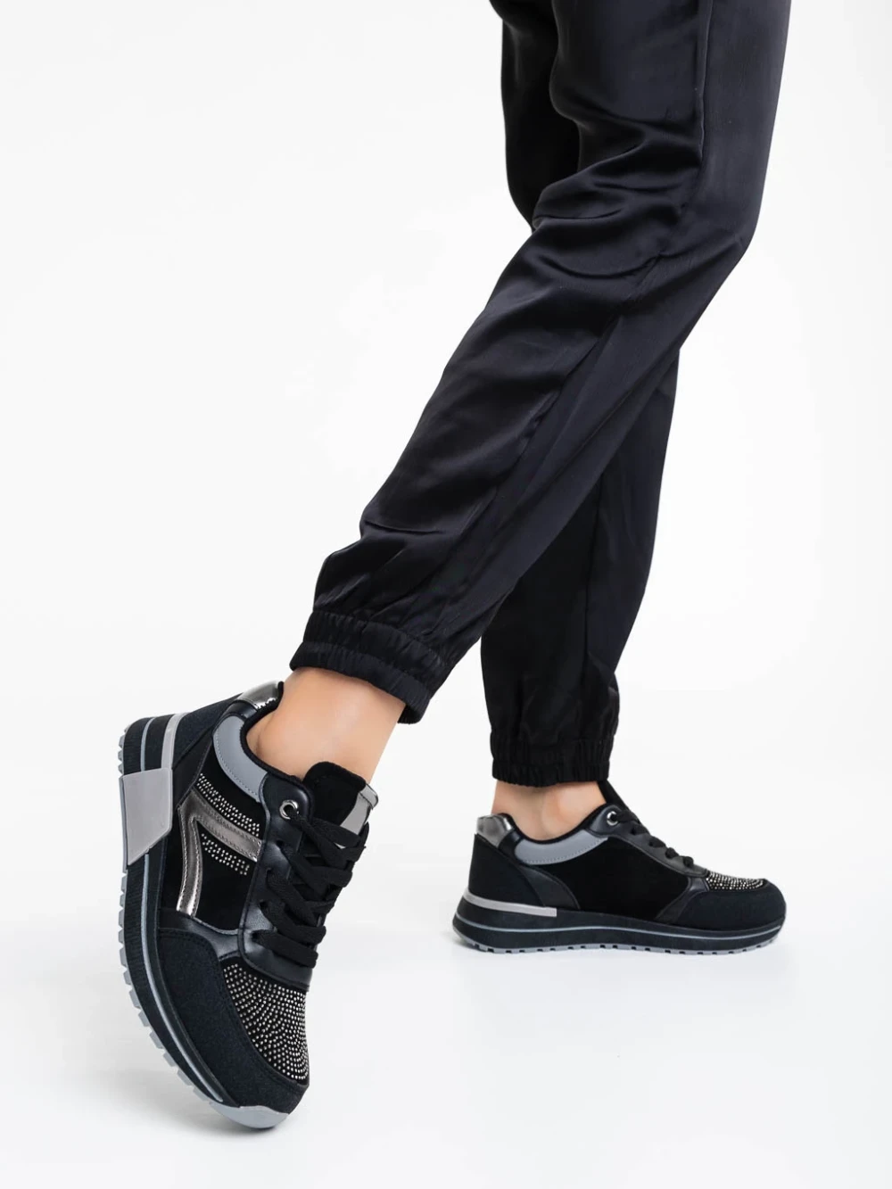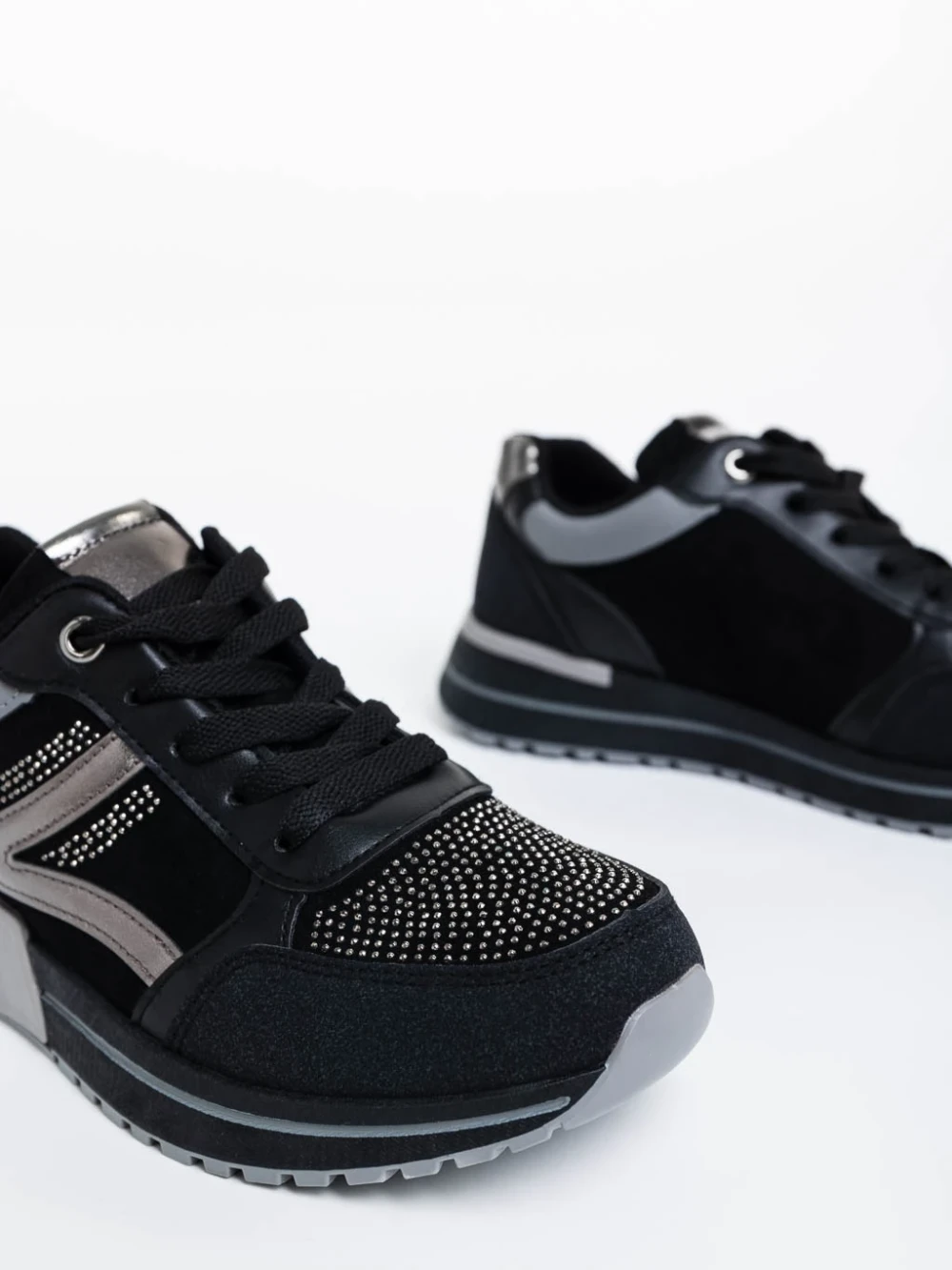 Pantofi sport dama negri din material textil si piele ecologica Ravenna